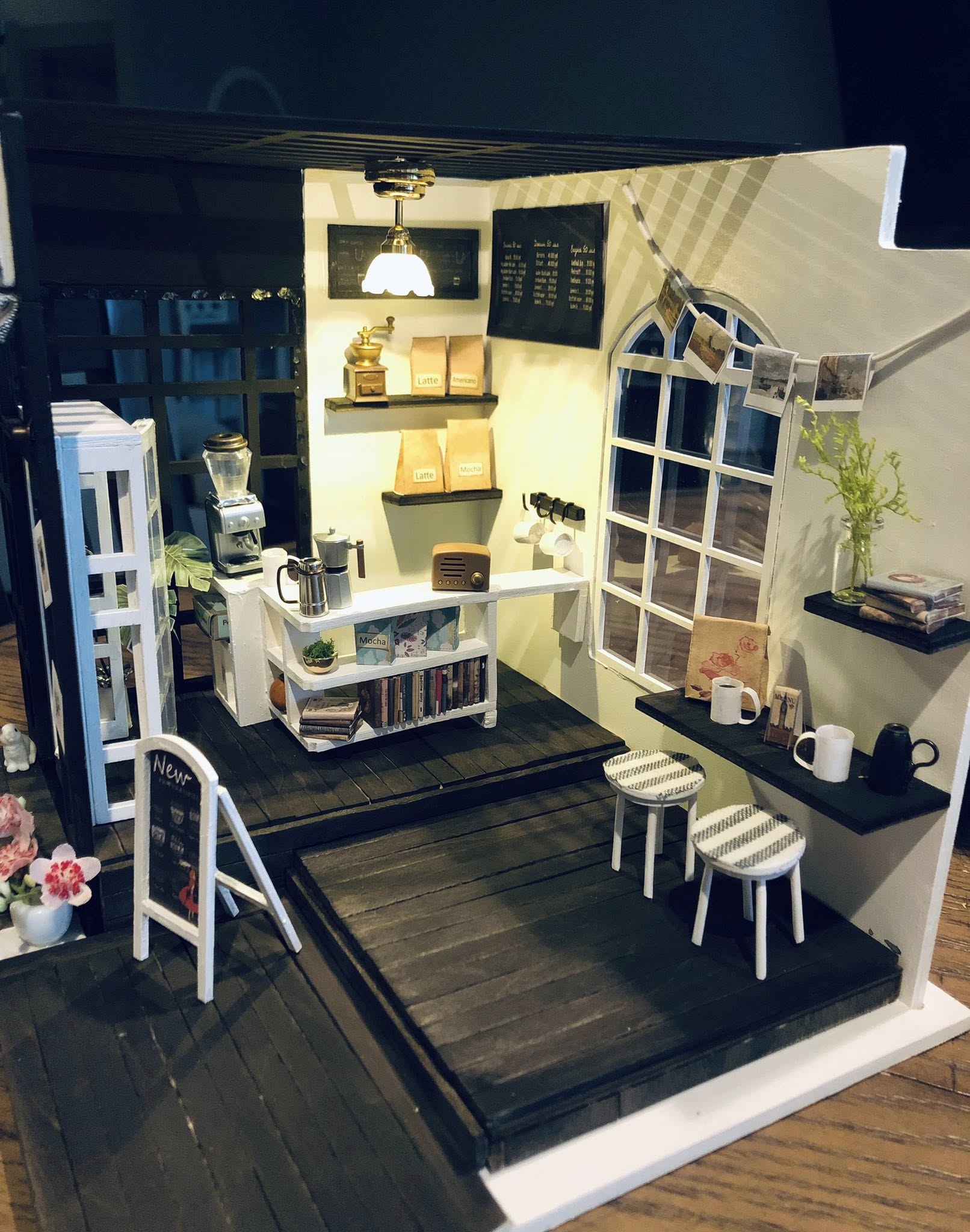 Just finished my latest Rolife mini house project — Simon’s Coffee, but I switched it up to “Sims Coffee” in honor of my lifelong love for the Sims games! I customized the layout and decor to give it my own unique style, making it truly one-of-a-kind.