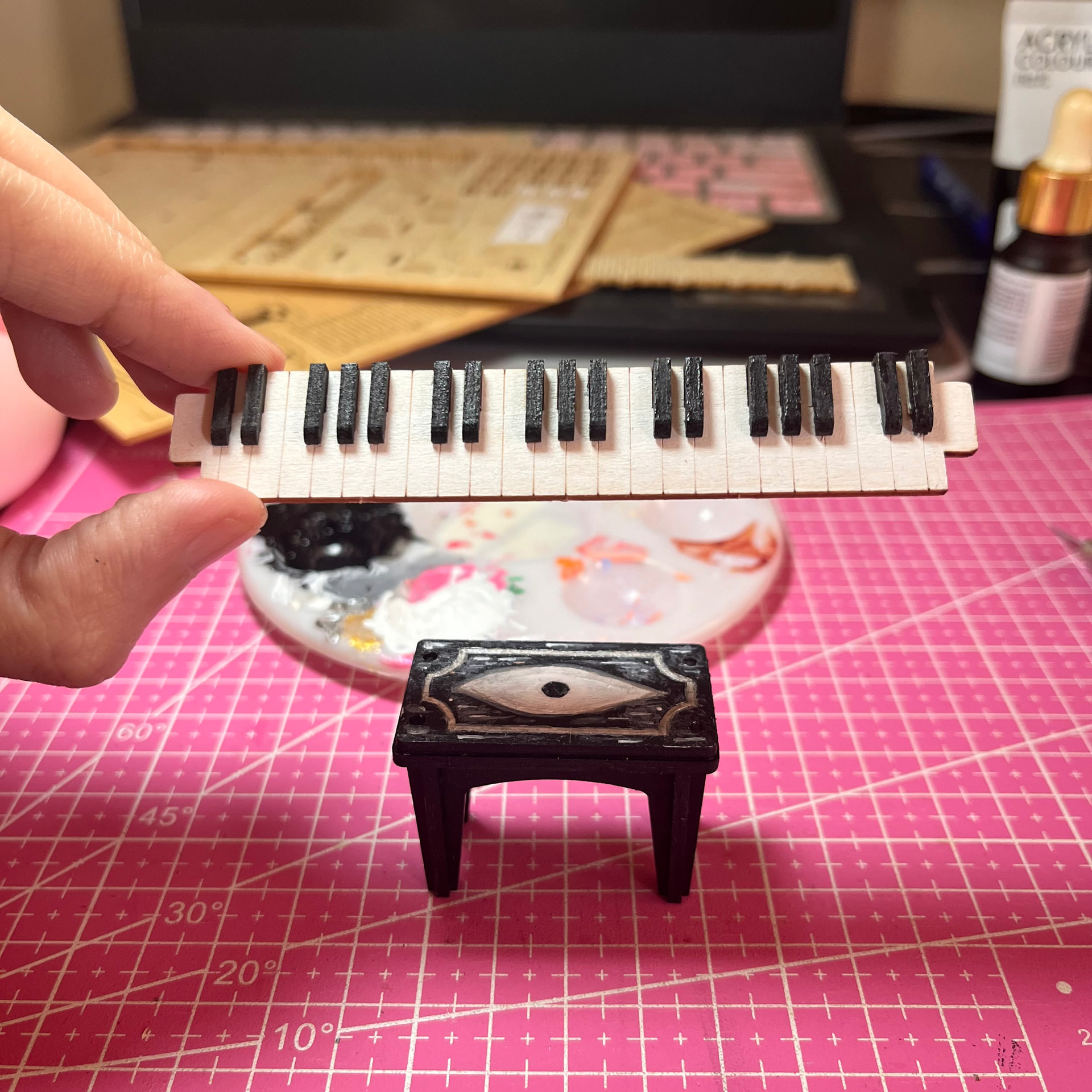 As you can see, I’ve painted the mini keyboard here. It’s so small that it hurt my bad eyes. I also painted the chair.