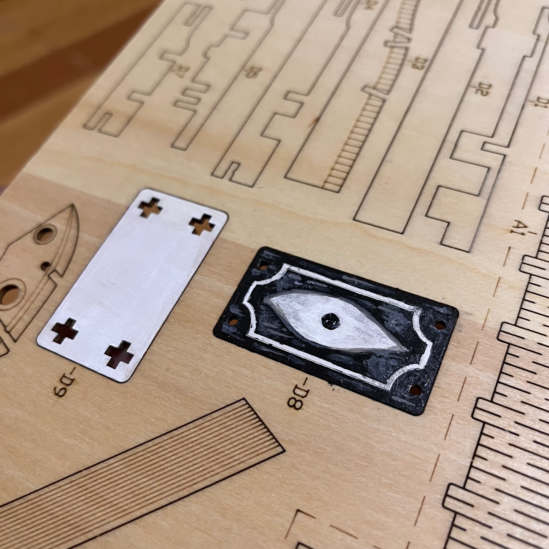 I also connect the keyboard on the side panels and painted the background of the chibi characters like a checkered fabric cloth. Now you know where the chibi characters are connected.