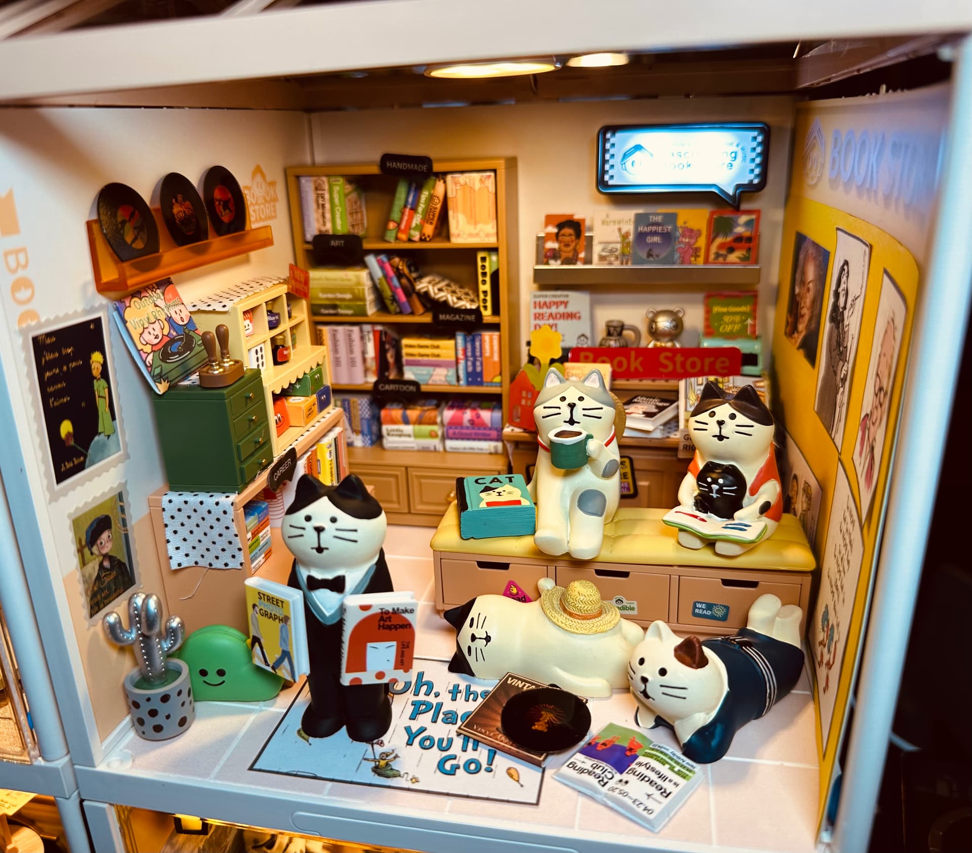 It makes me wonder… if I ever stepped into this “Fascinating Book Store,” which cat would come up to me first, and what kind of secret advice would they give?