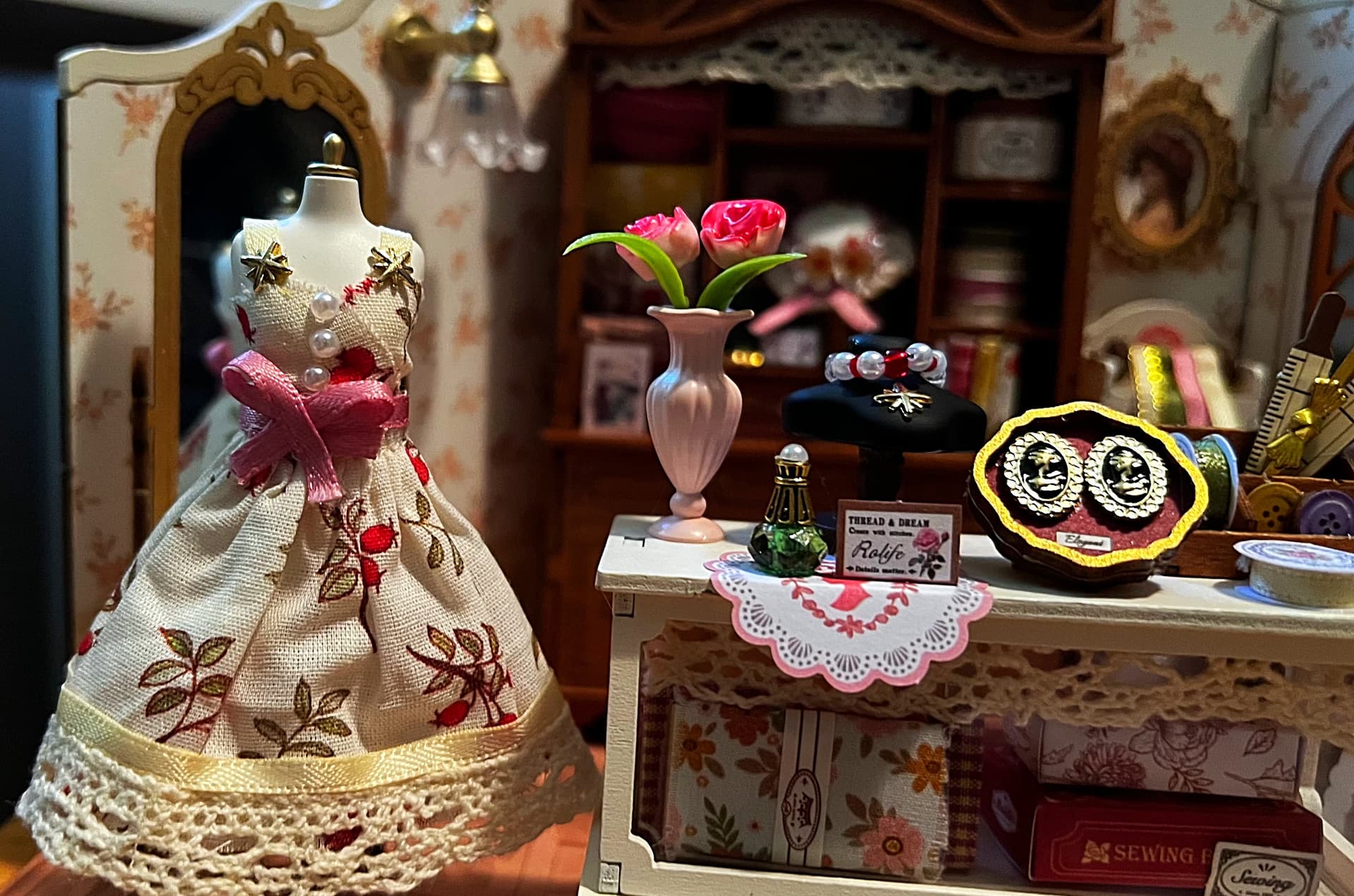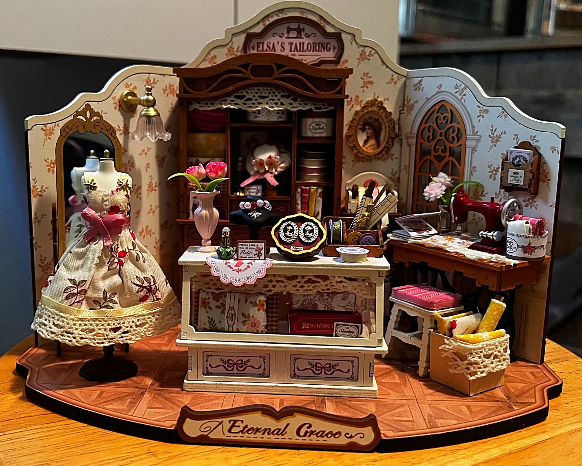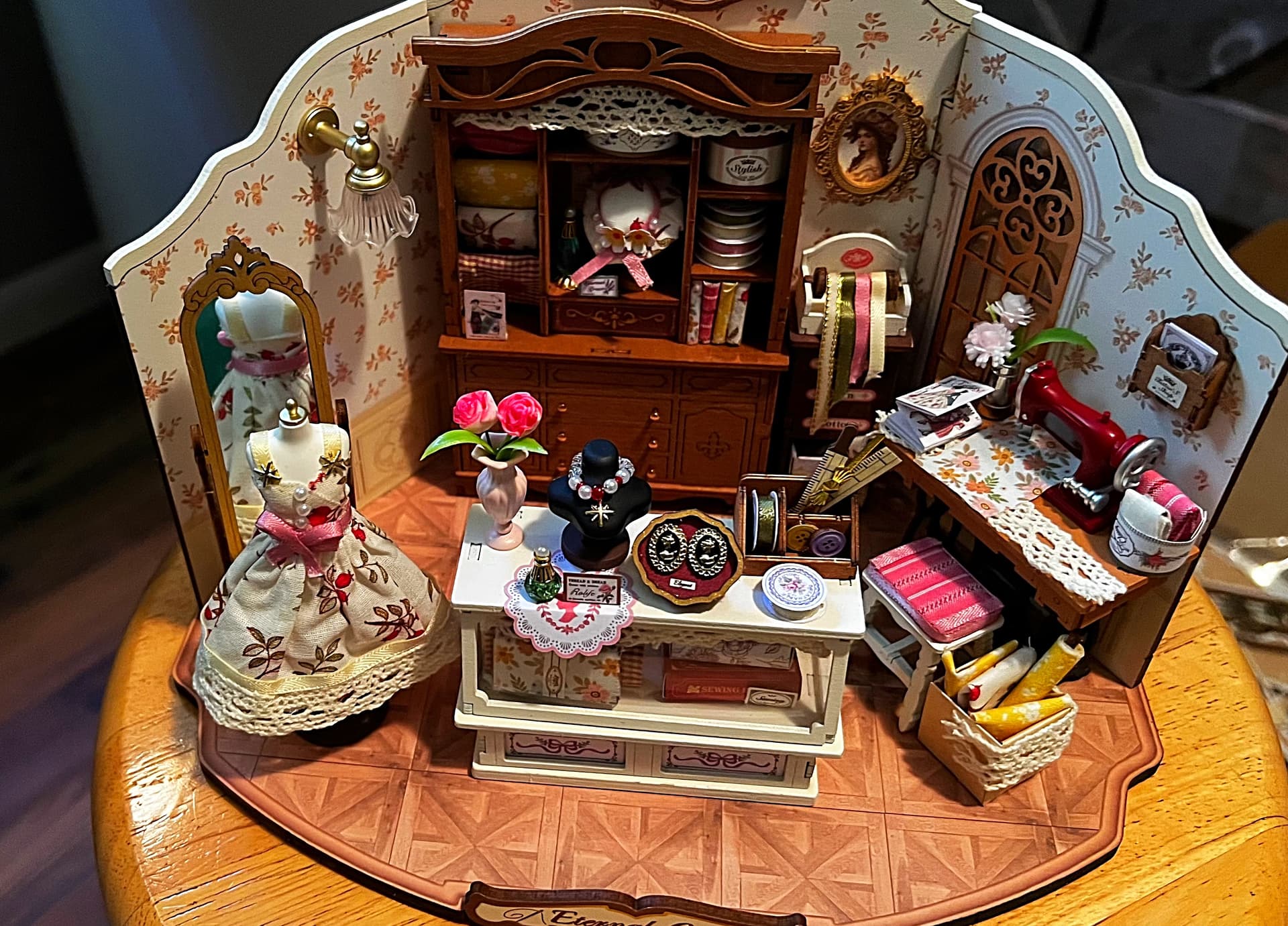 Now, let’s talk about Rolife! This miniature sewing shop is pure magic! The attention to detail is absolutely stunning, from the tiny dresses to the elegant hat. I had such a wonderful time building it, and every piece reminded me of that story of love, legacy, and craftsmanship.