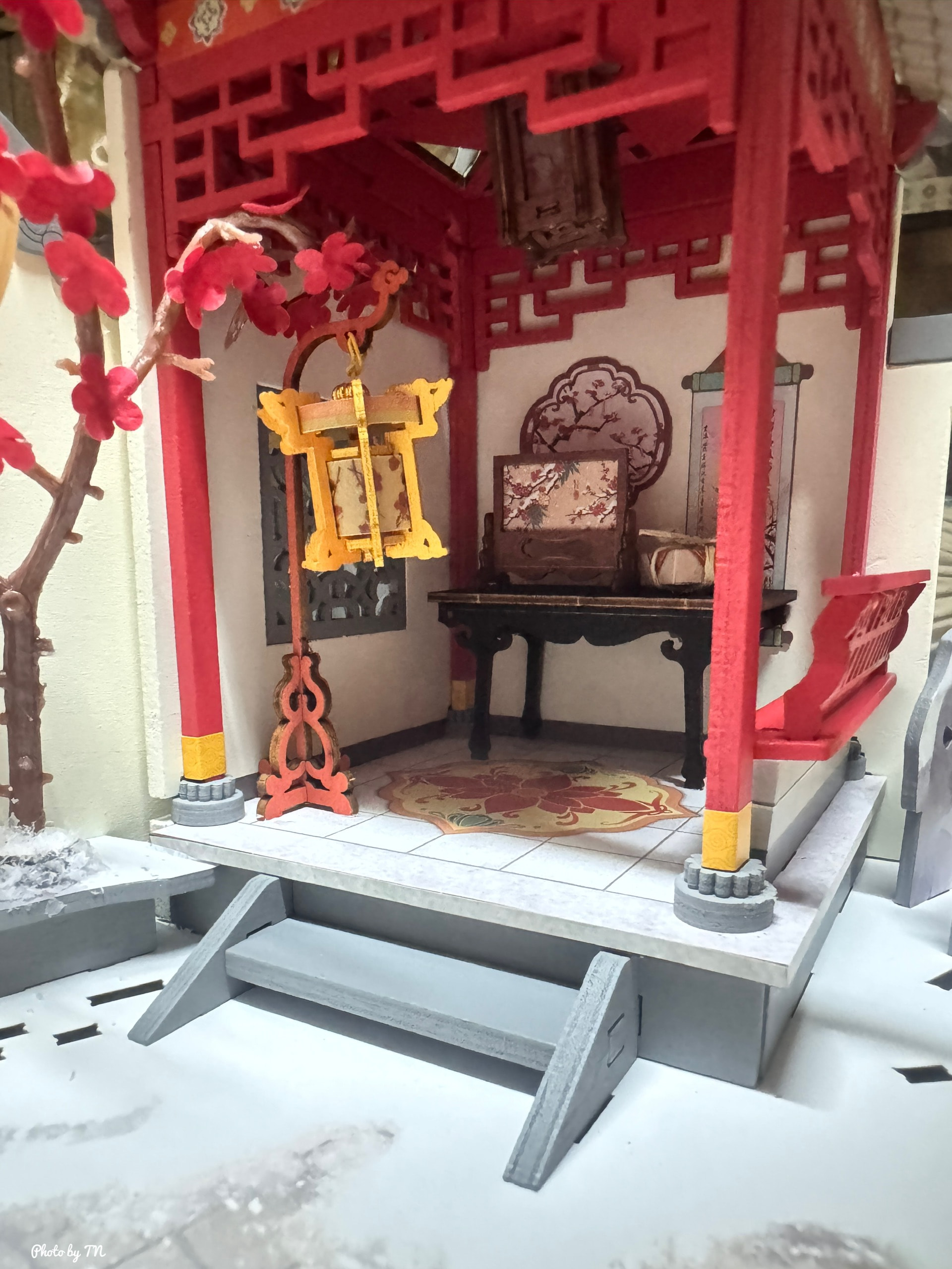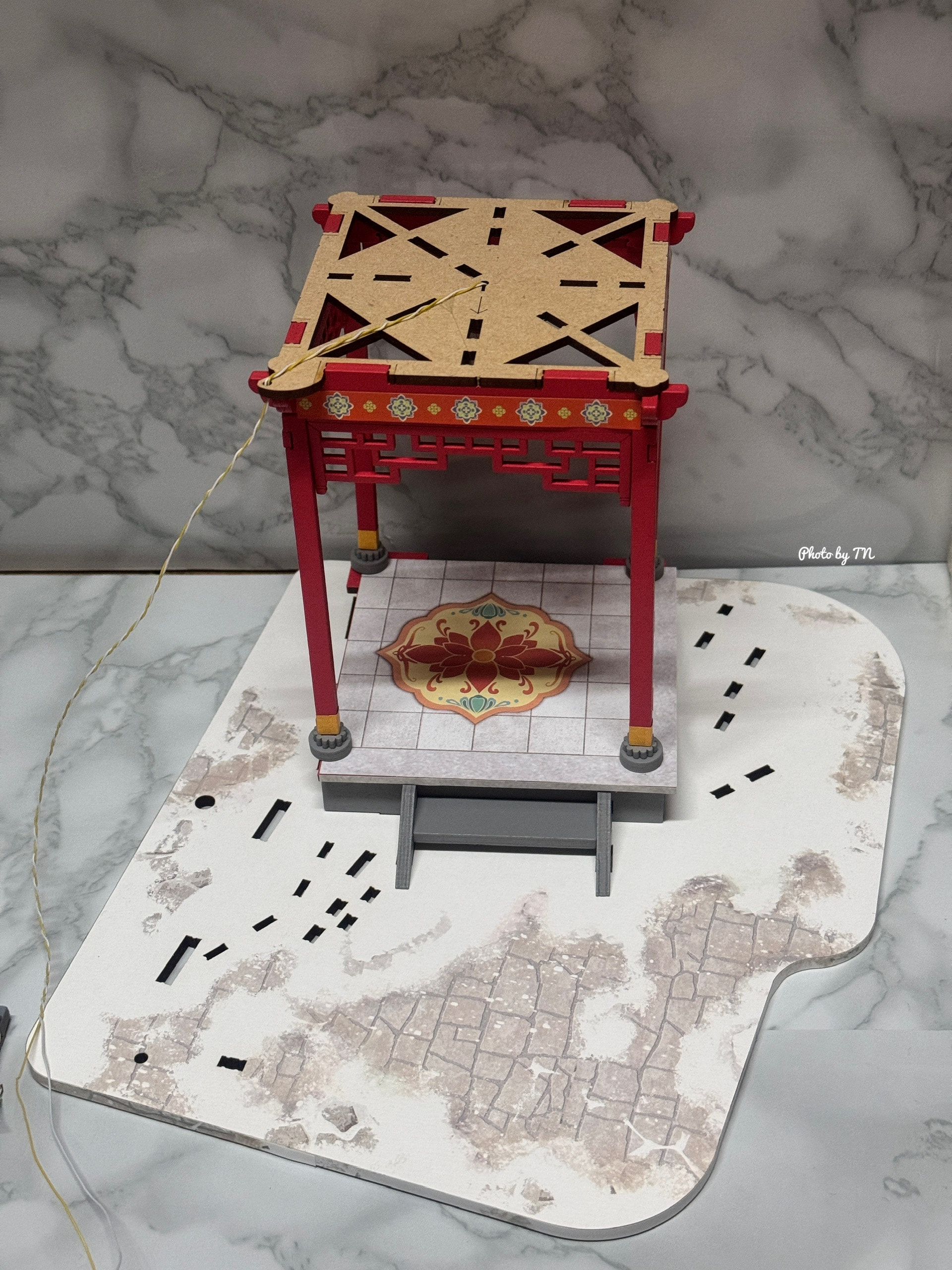 I’ll start completing the model by attaching the pavilion roof to the base. With just a few details, the small pavilion roof is perfectly crafted. The included accessories create the right Chinese atmosphere for the model.