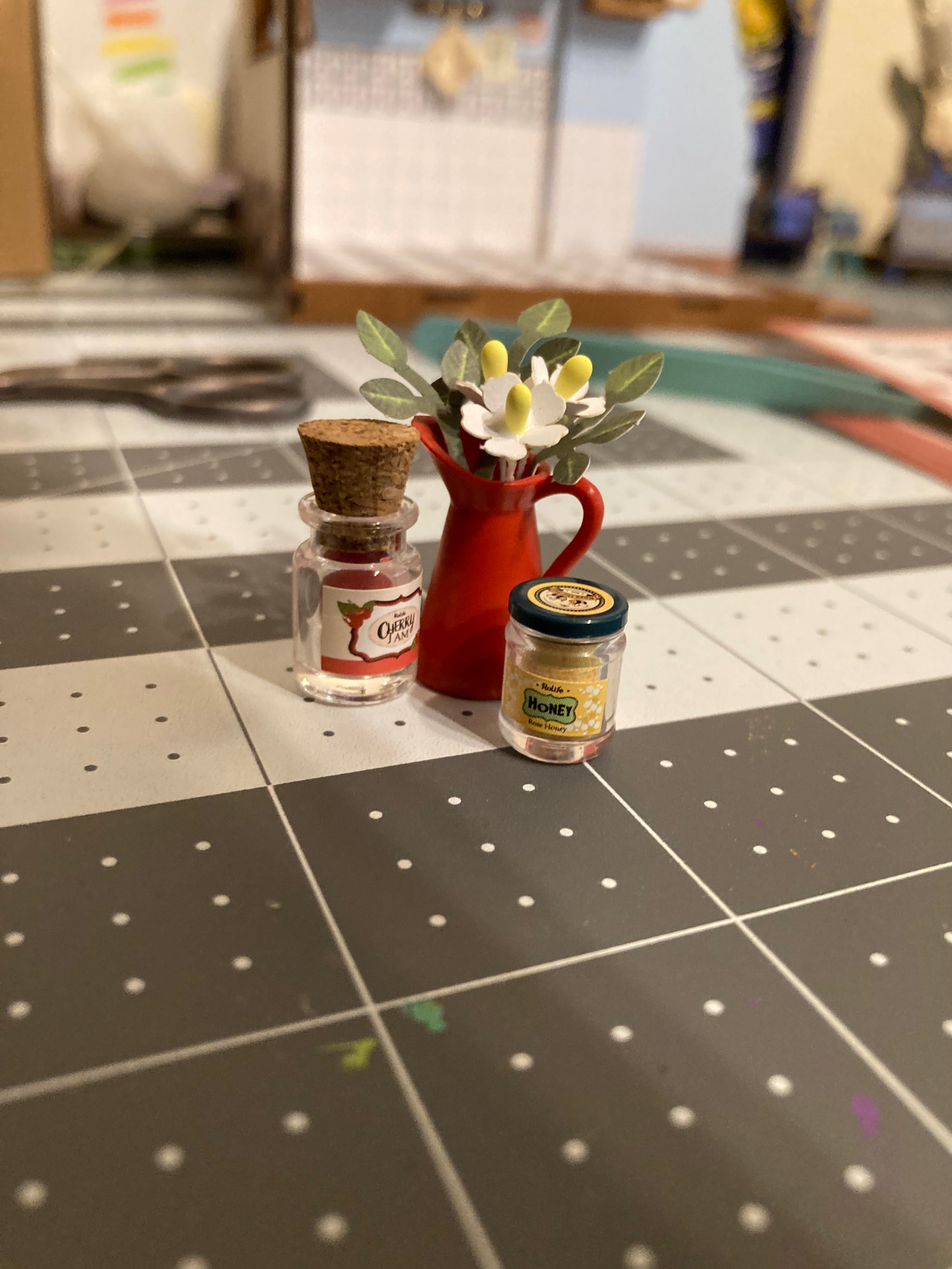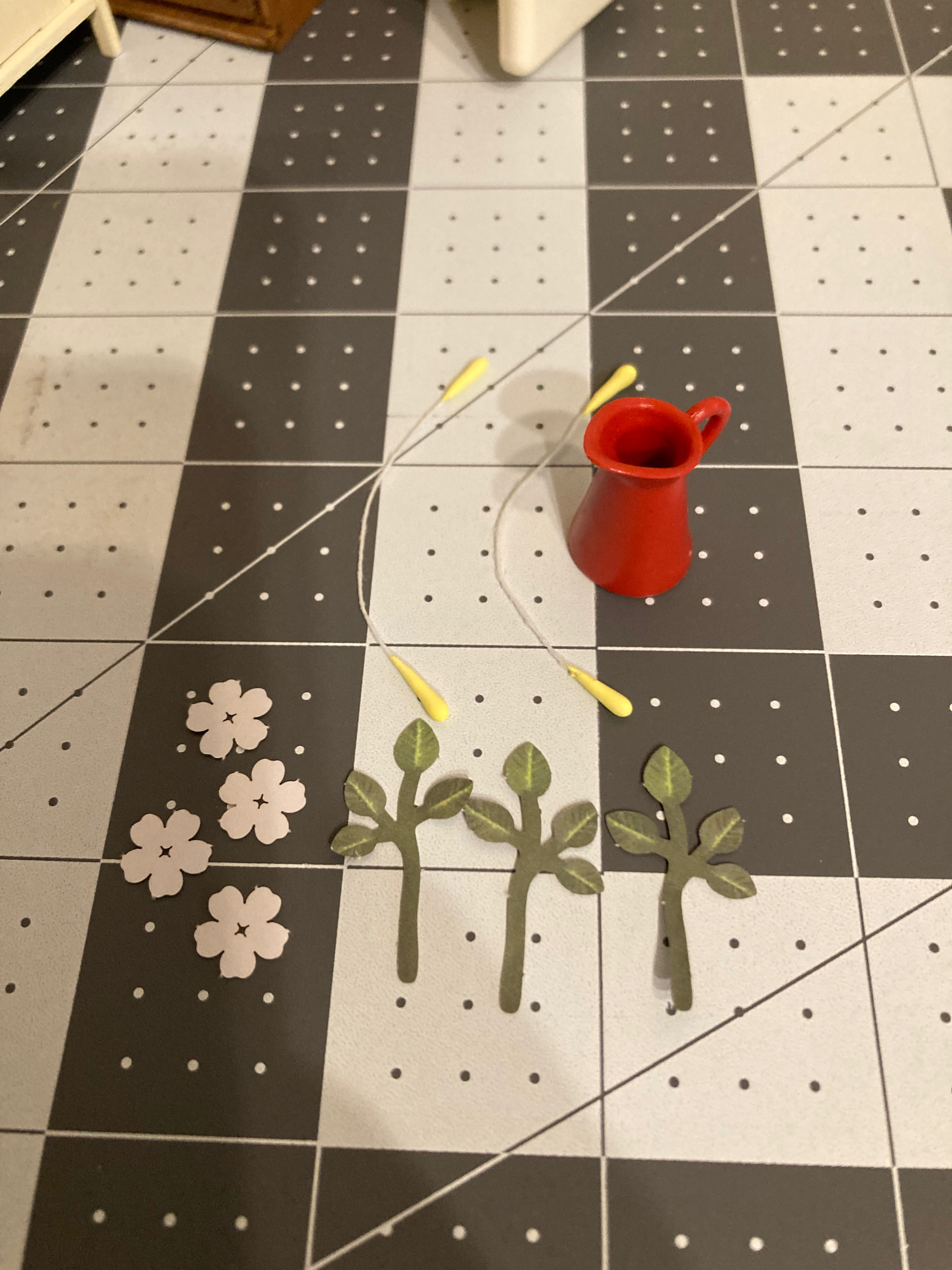Omg they are so cute. I love making flowers. The coffee machine and fridge are super cute.