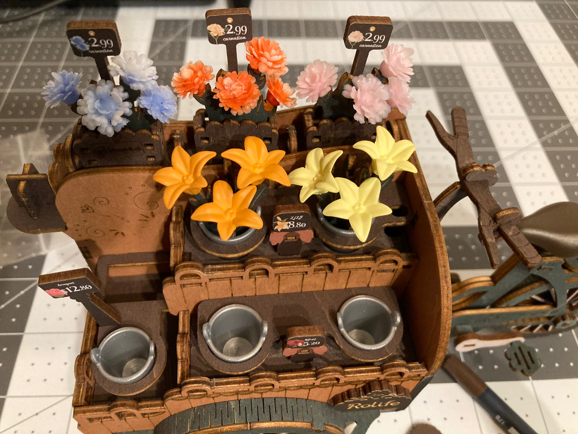 Now it’s time for more flowers. Yay! The flowers are easy to do in this kit. I would recommend the Blossom Cart to beginners and individuals that have trouble with the older paper style flowers.