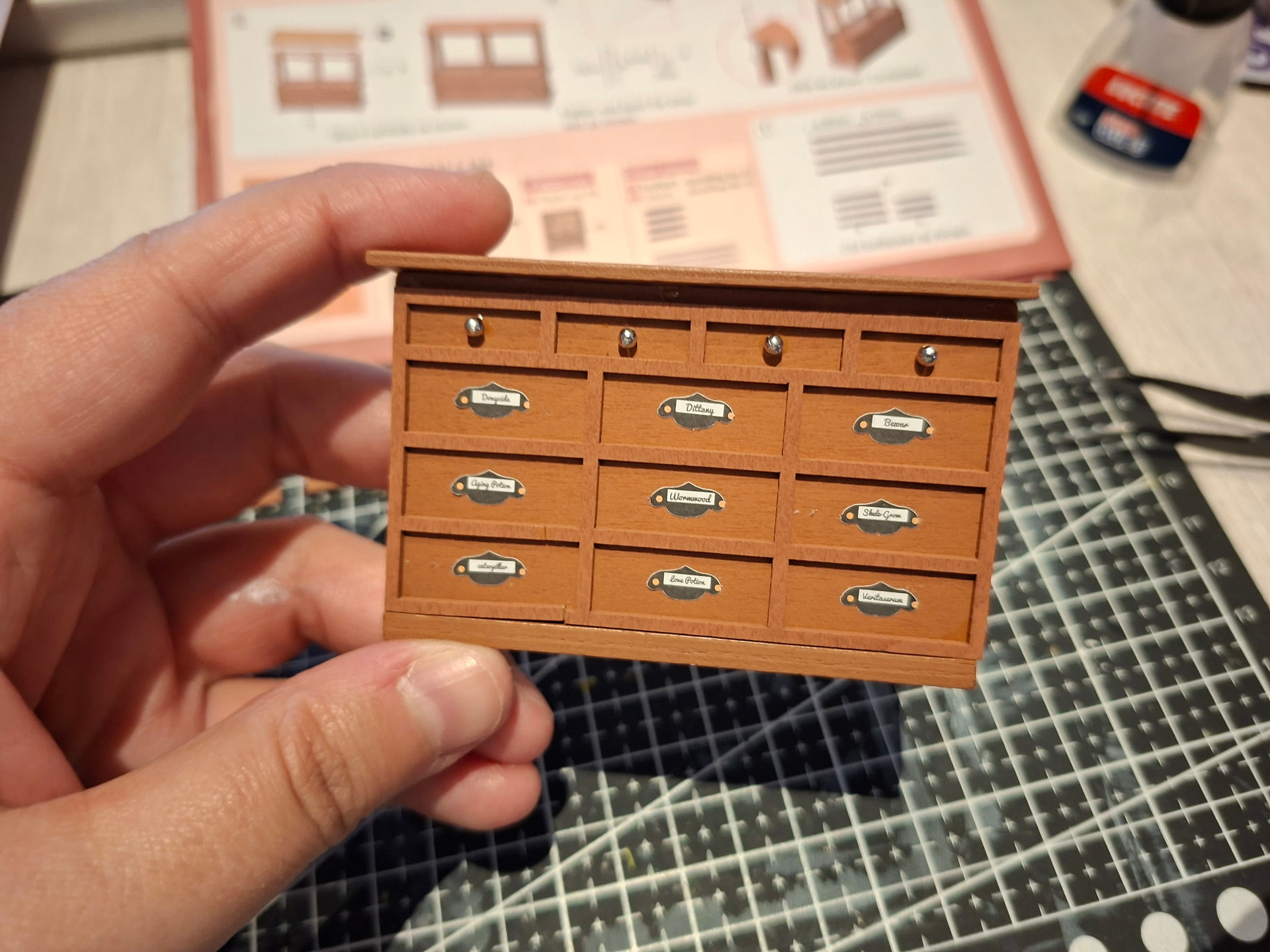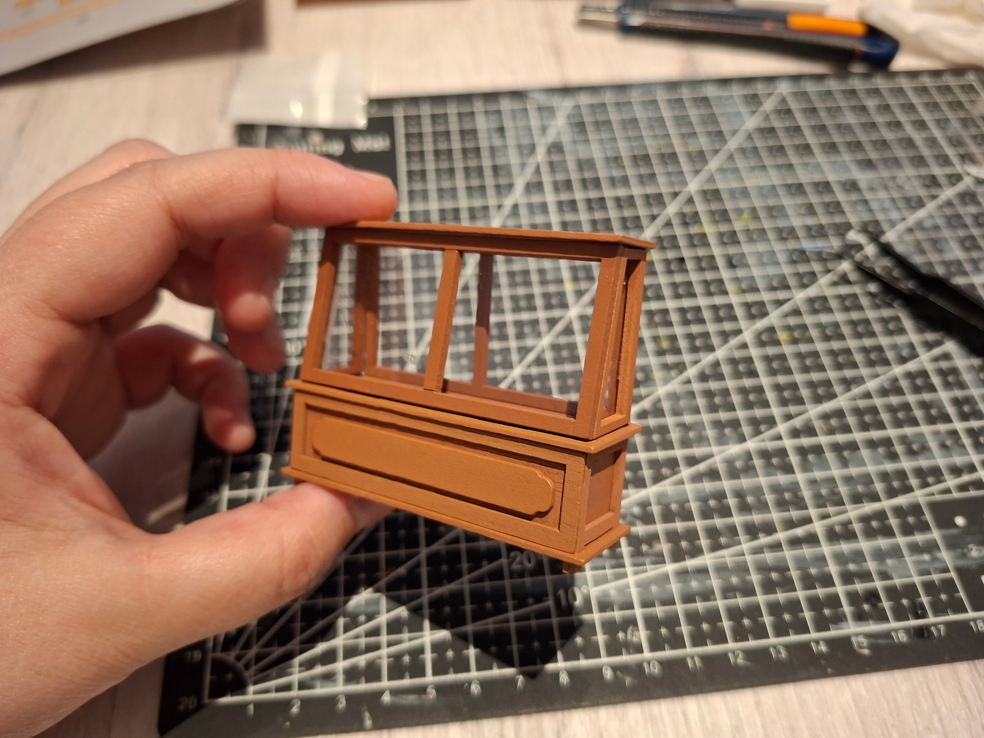 I love how challenging these kits are, but that tiny chair, cutting toothpicks into small pieces, was a bit desperate at times. The pieces kept sticking everywhere except where they were supposed to go!
