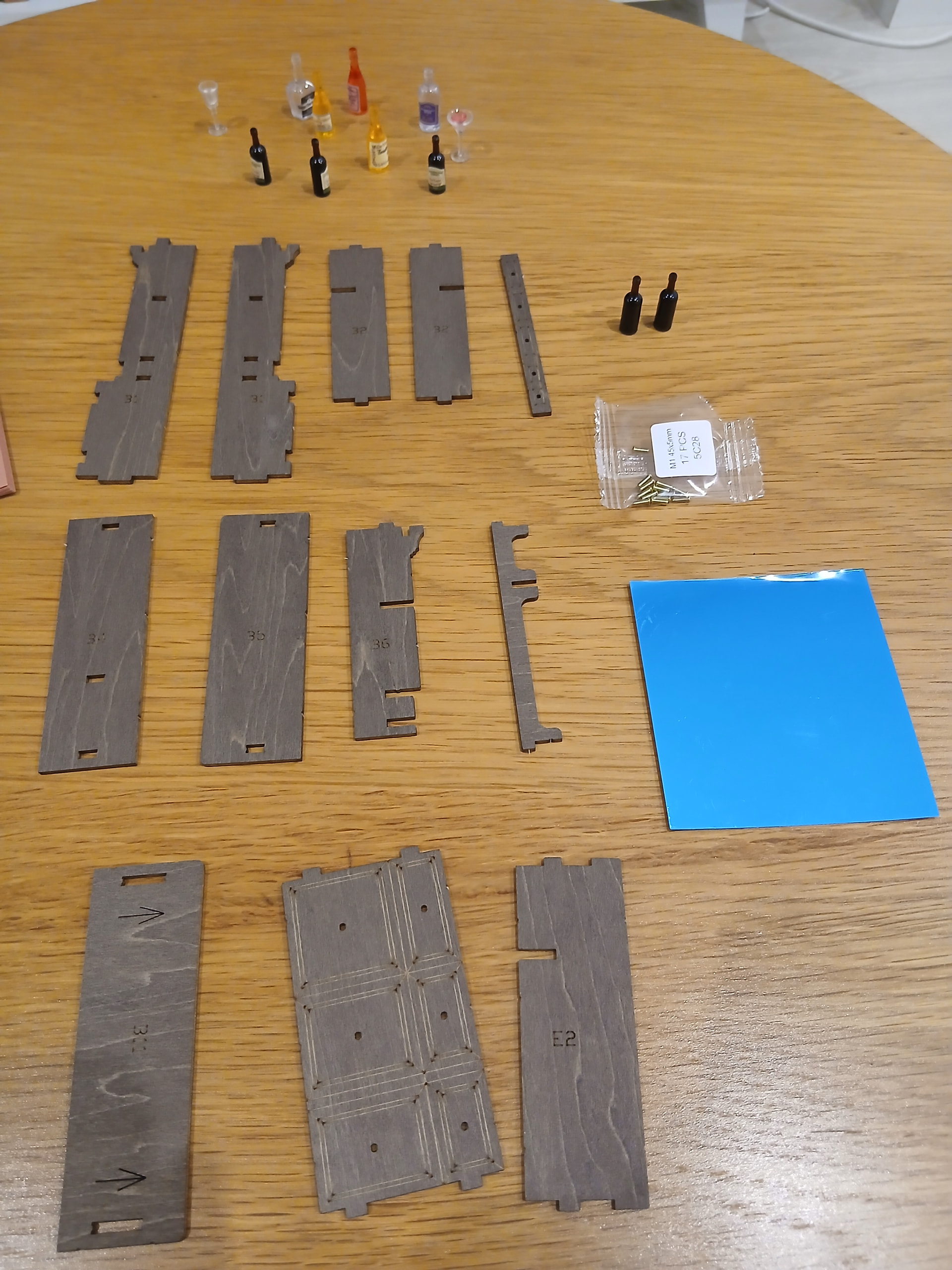 Of course a man can’t just have his bottles of wine standing there without a sense, so it was time to put the wine cabinet together. I really liked the wooden colors of the parts here, it really felt like actual furniture wood.