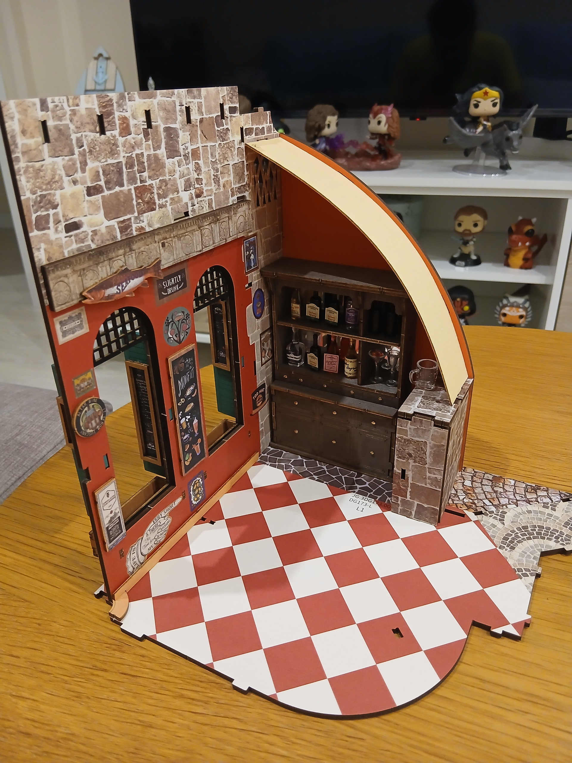 For the last step, jus two details: sticking the wine furniture I’ve already made to the corner, and adding some sort of stone bar counter and wall cover. It’s looking amazing already! I’m so excited to keep going and keep putting all this together, day by day, step by step.