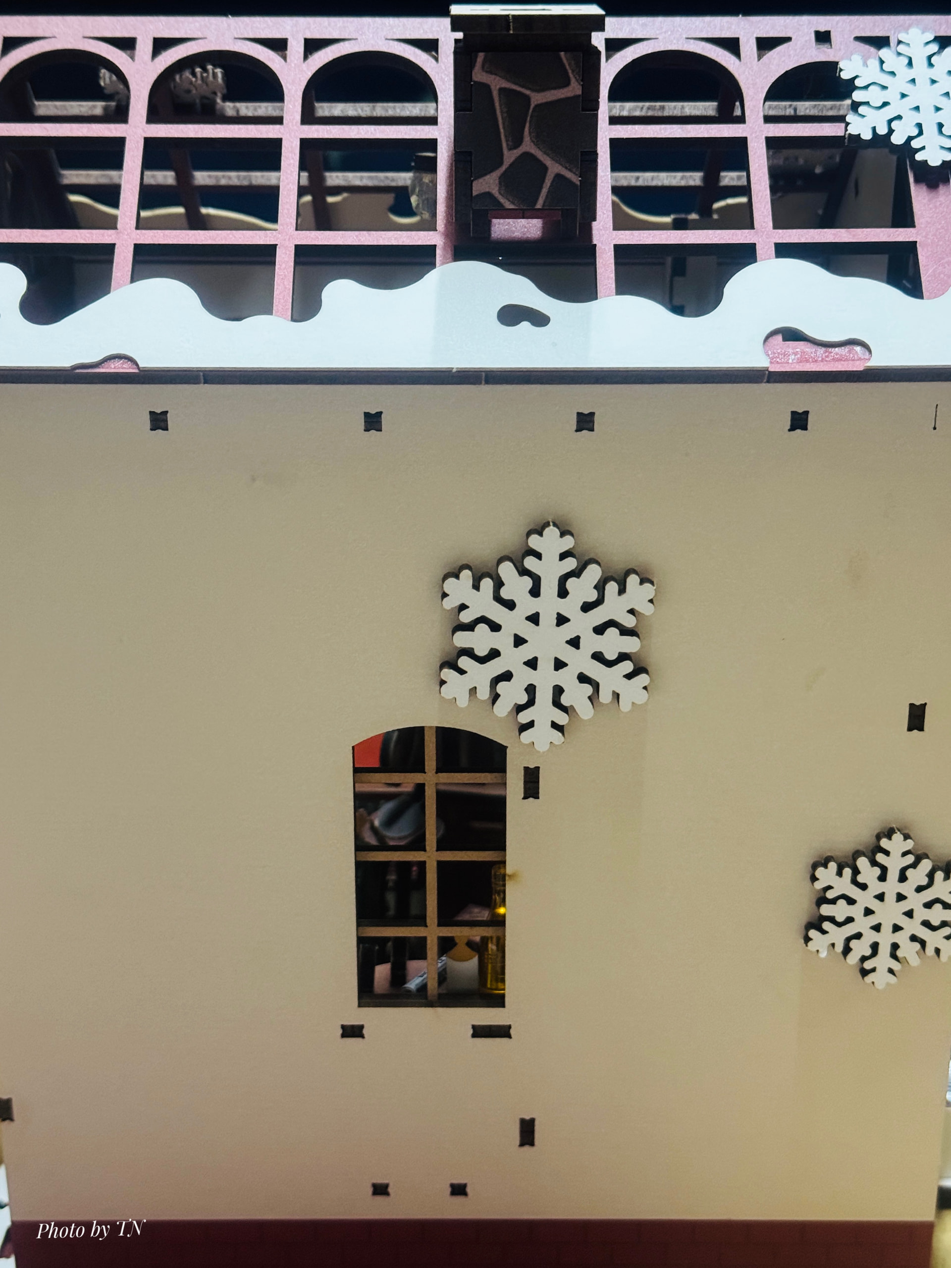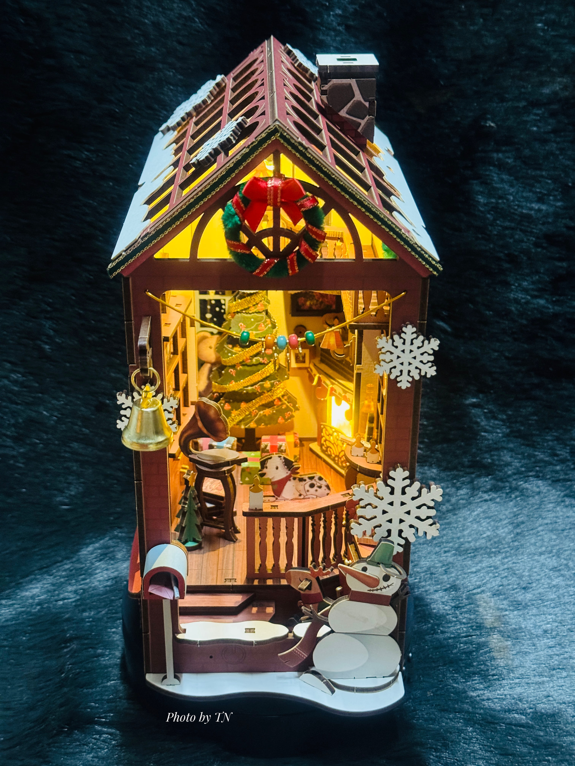 it looks so cozy especially with the lights soft glow. Great work!