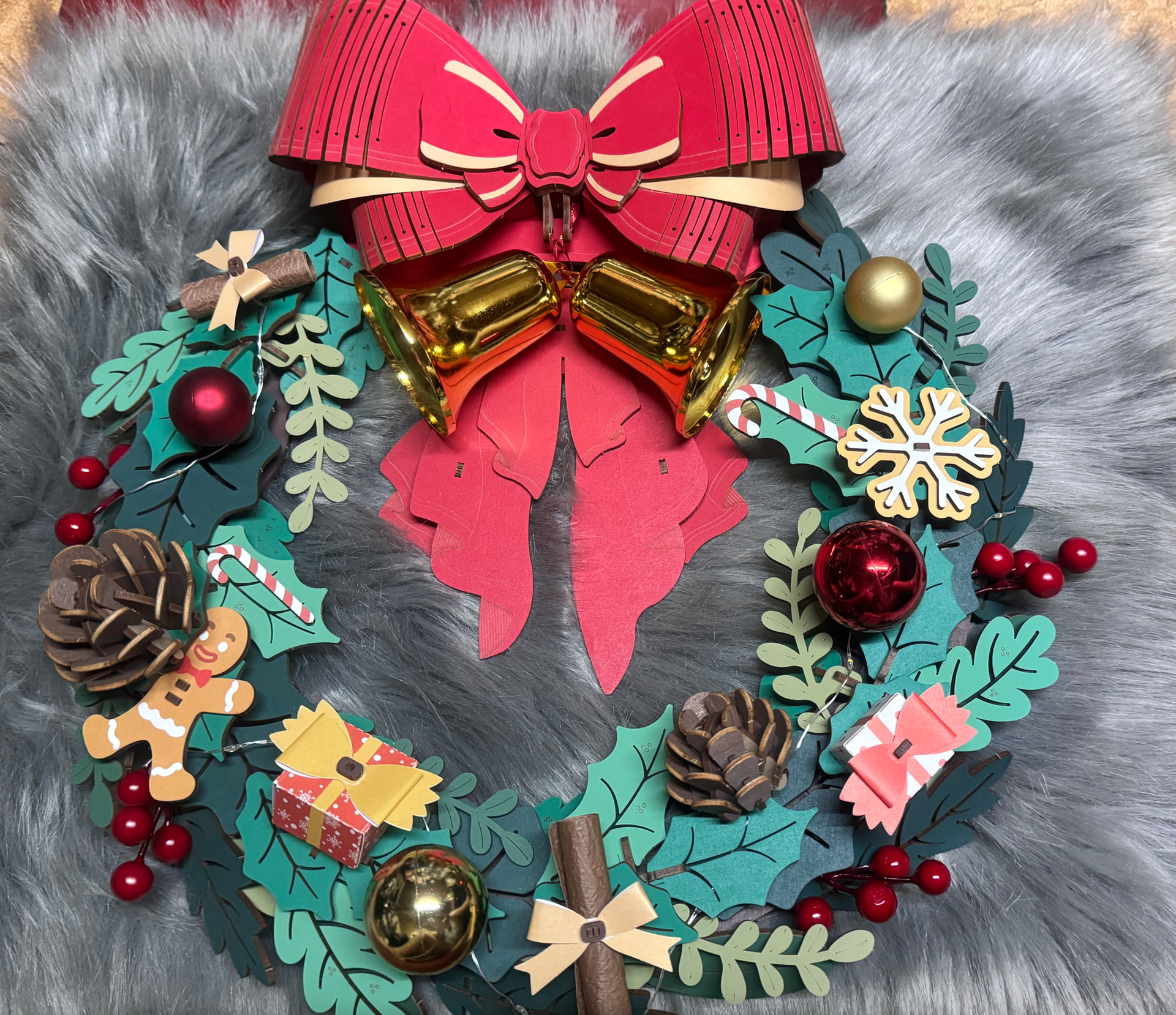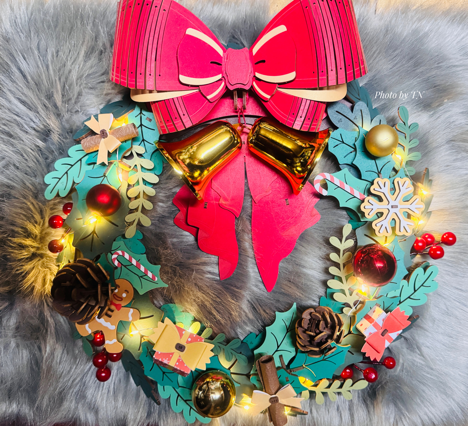 Finally, I finished the Christmas wreath. It’s amazing. It’s bigger and heavier than I expected. Now it’s time to find a suitable place to hang it. From those stiff pieces of wood, I’ve made a wreath that’s surprisingly soft and delicate.