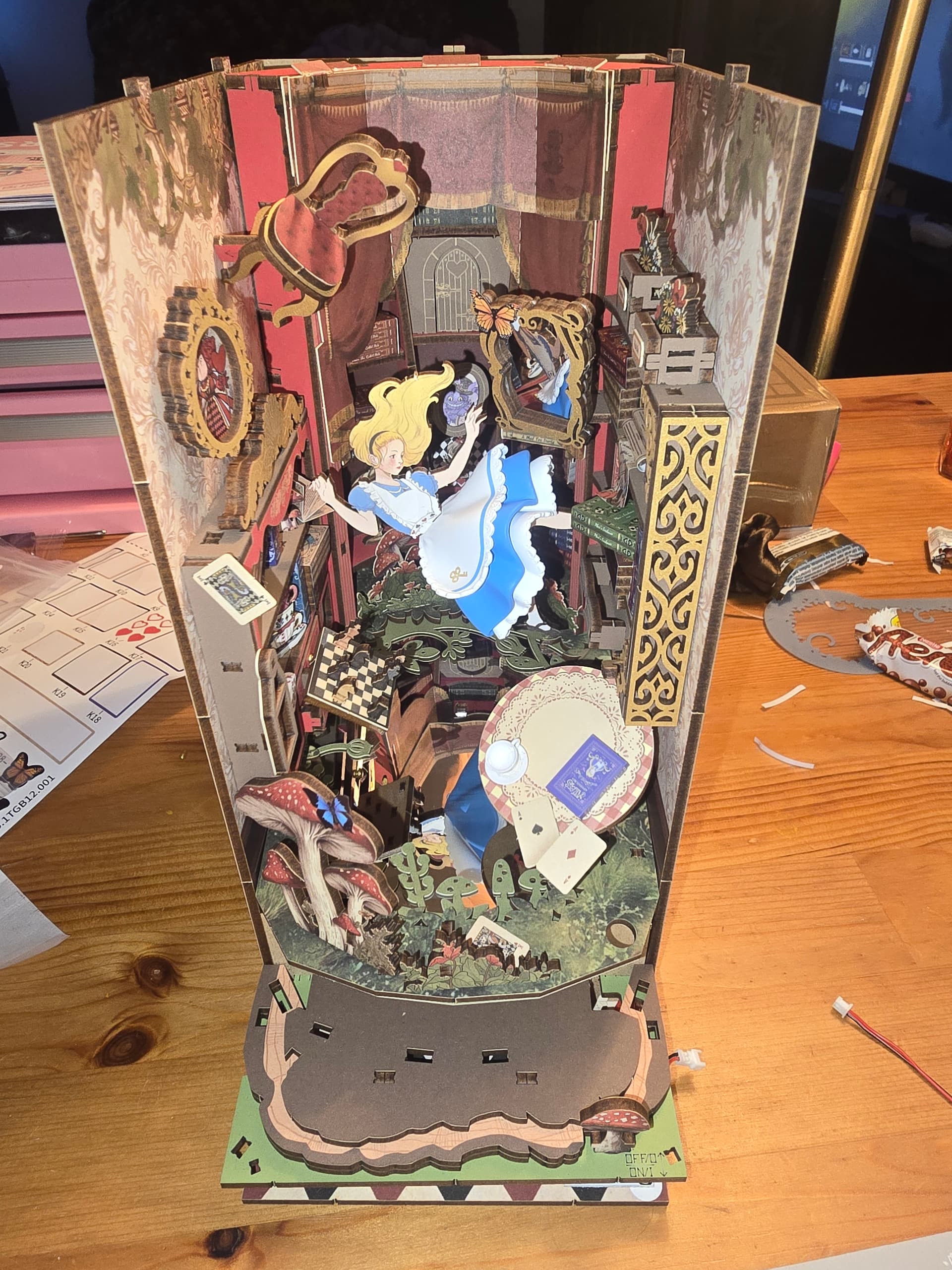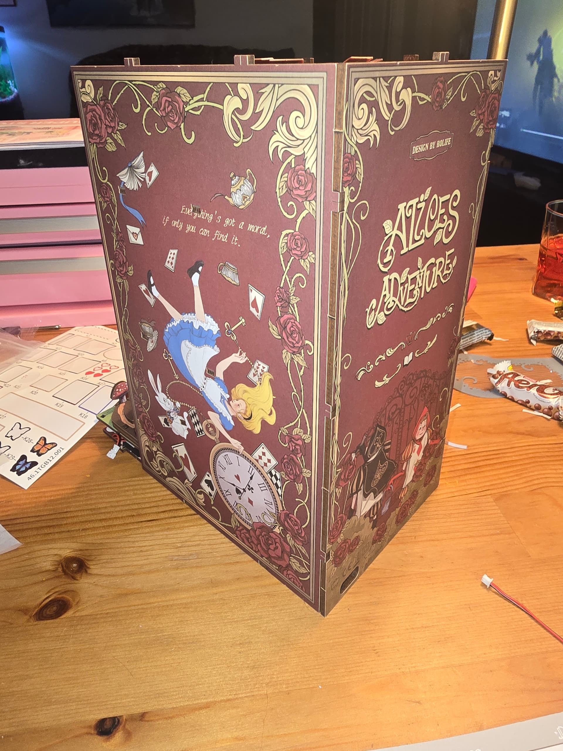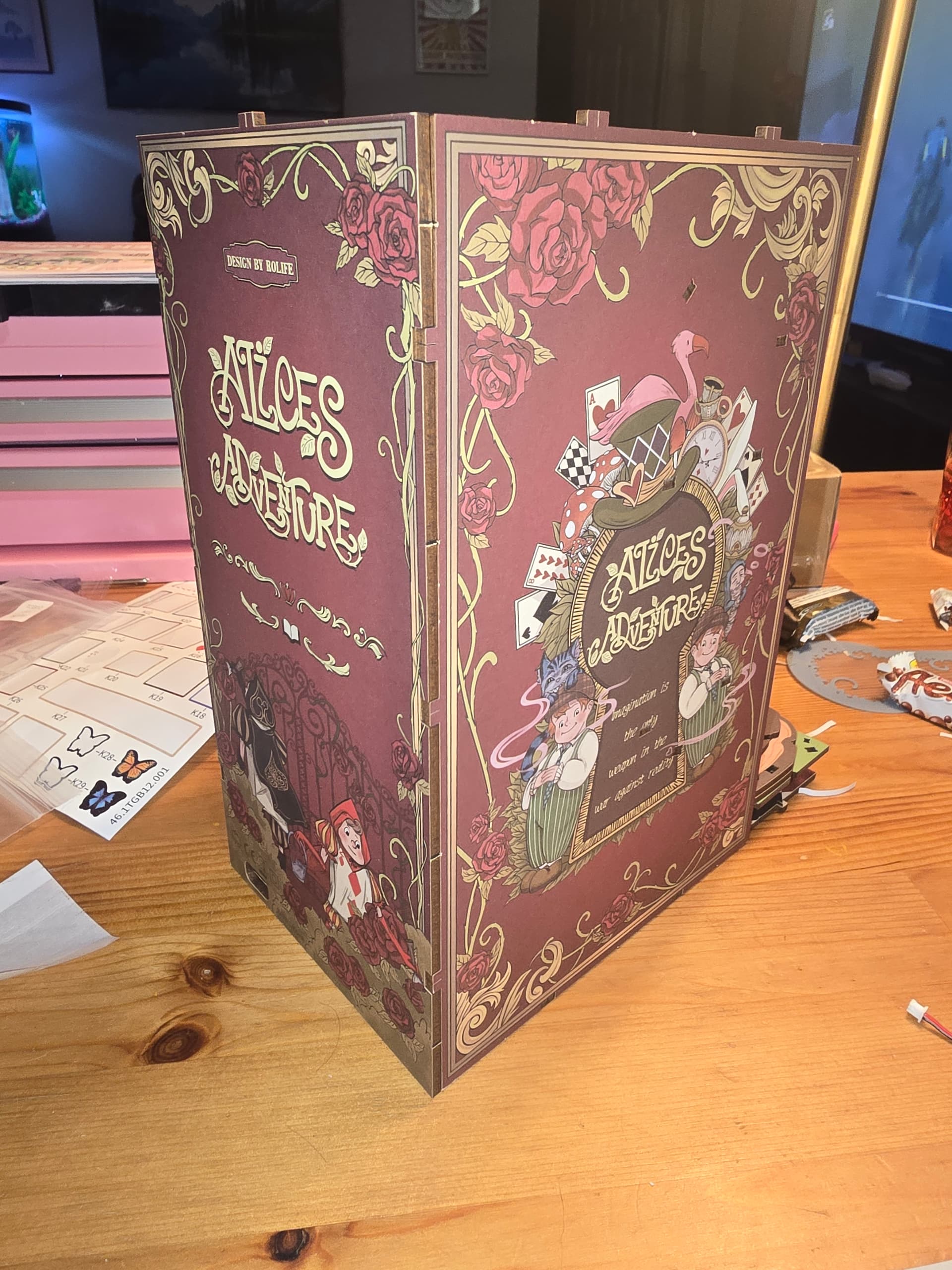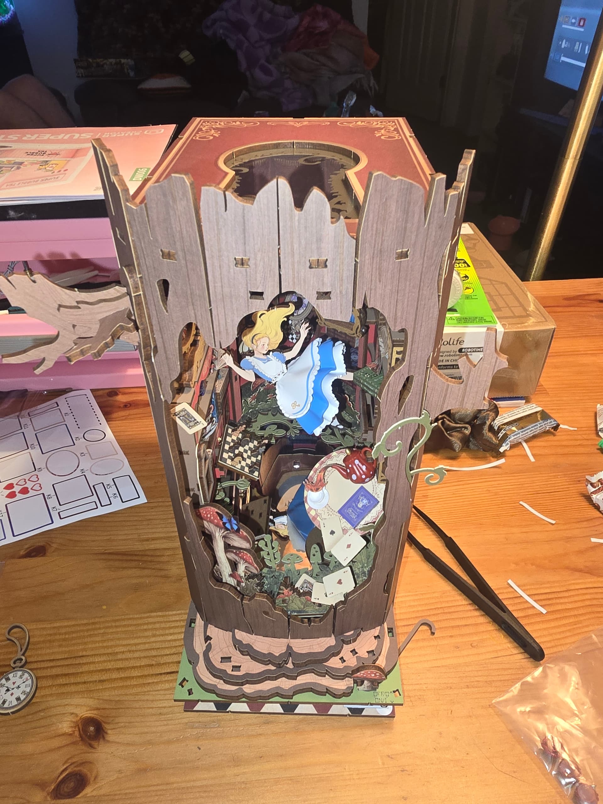 I have finally finished it!! I had a hickup but thanks to @Robotime I got a replacement piece right away and got right back to work! I had so much fun making this, It brought me back to when I’d watch the orginial Alice in Wonderland made in 1951 (Im not a big fan of the newer movie lol!) One thing I’d like to mention is that the plywood was quite thick and really nice to work with, I wasnt too scared about breaking any pieces I hope y’all enjoy the post and I hope it inspires you to do the same build!
