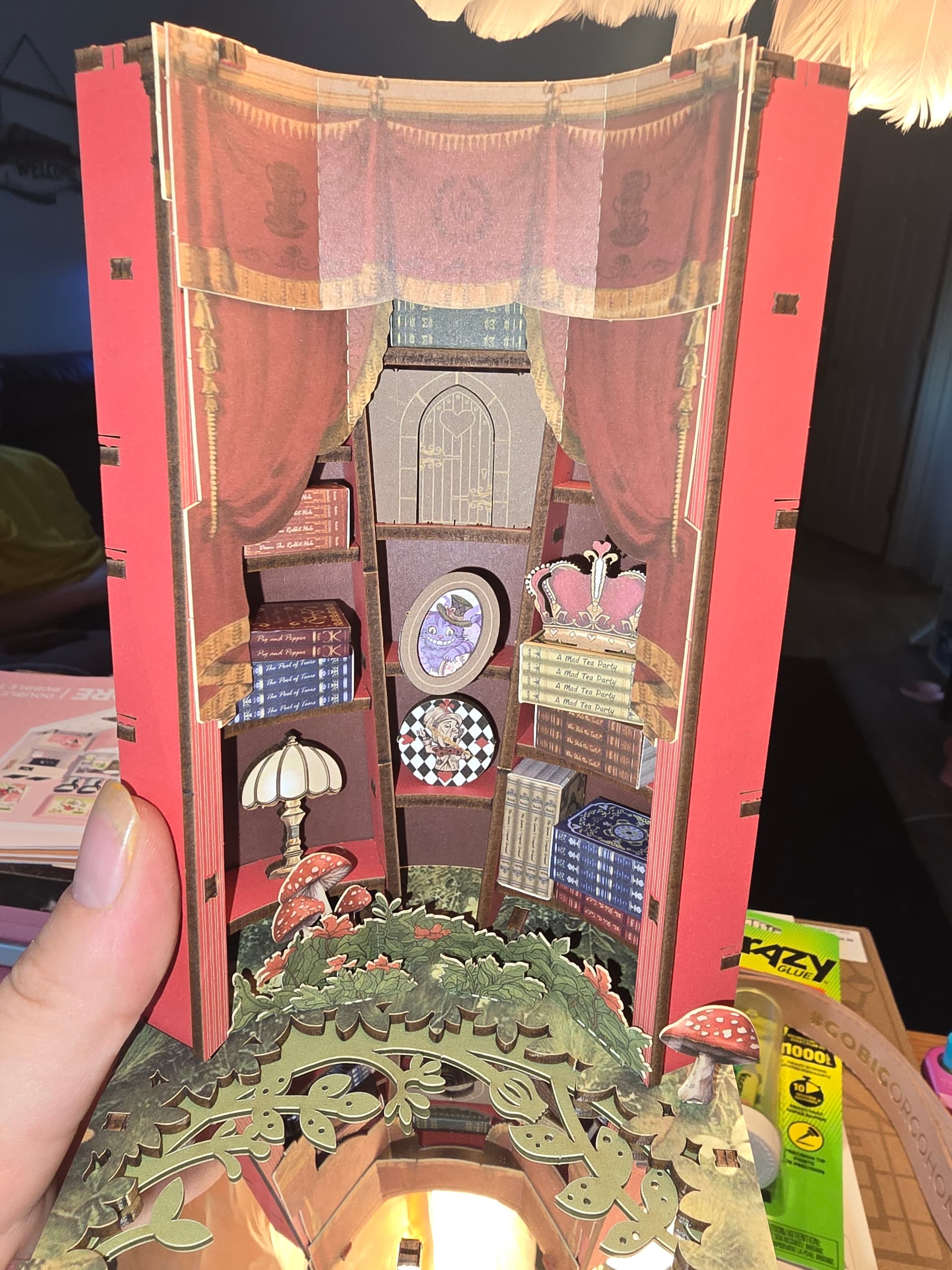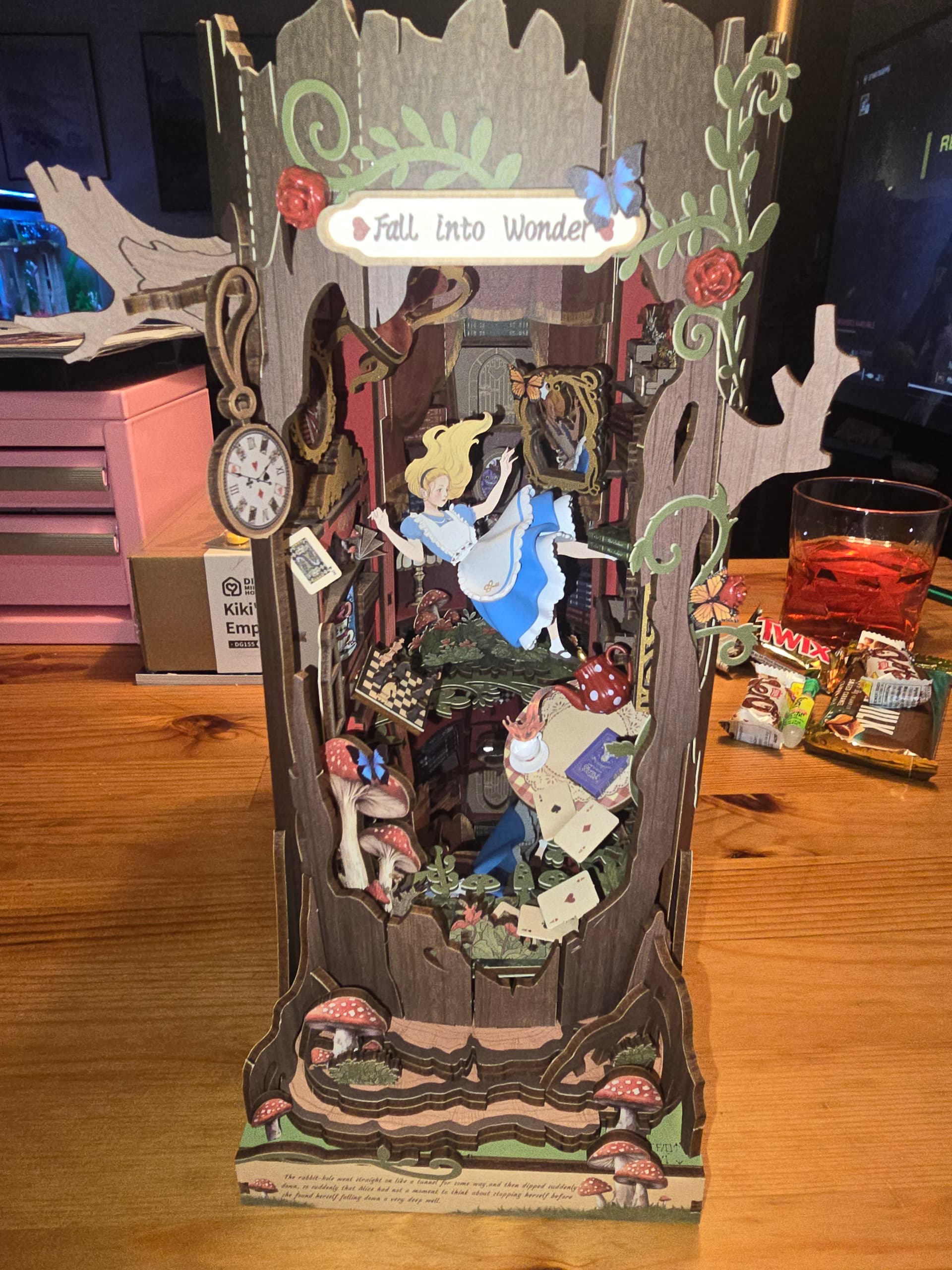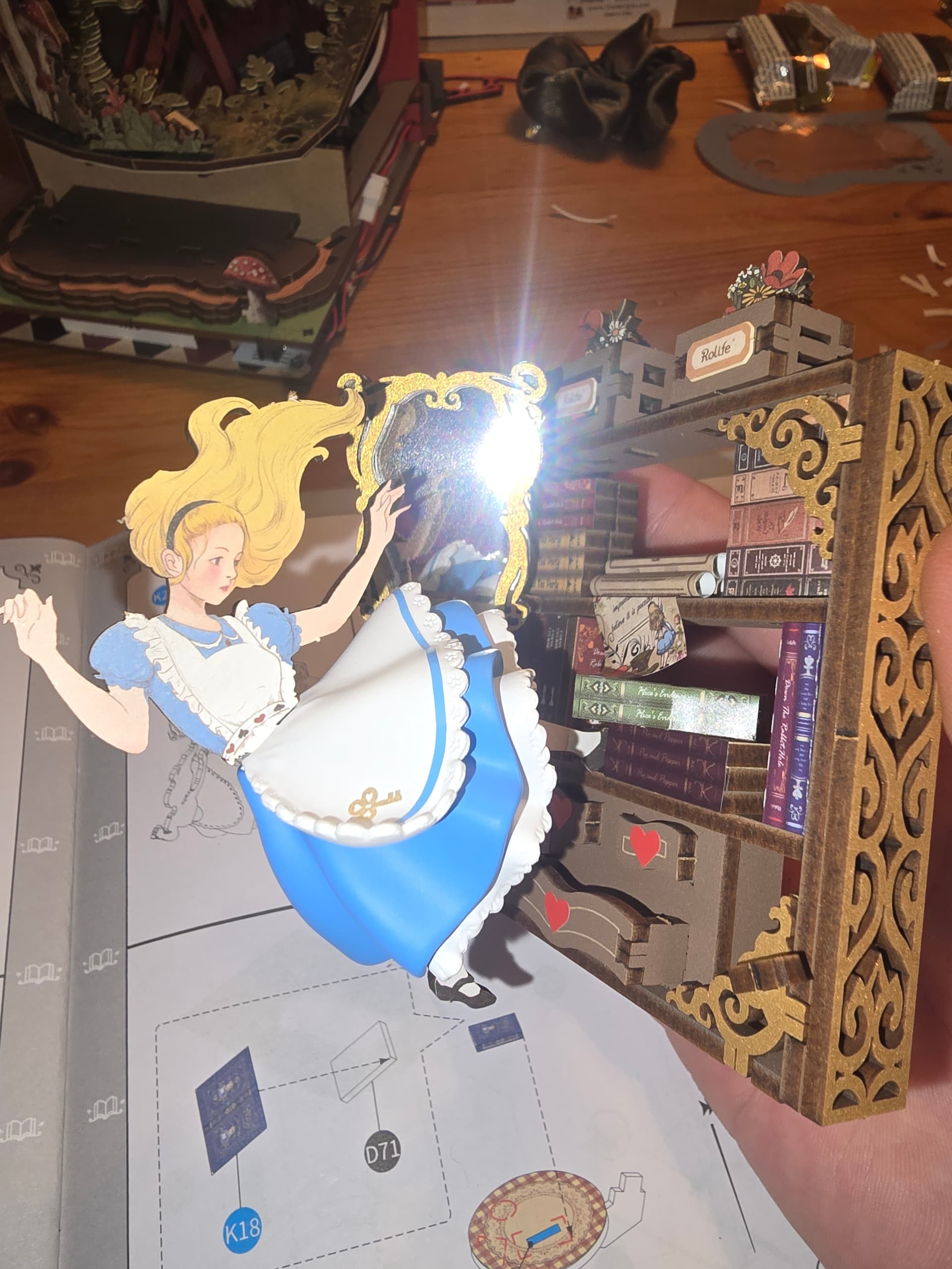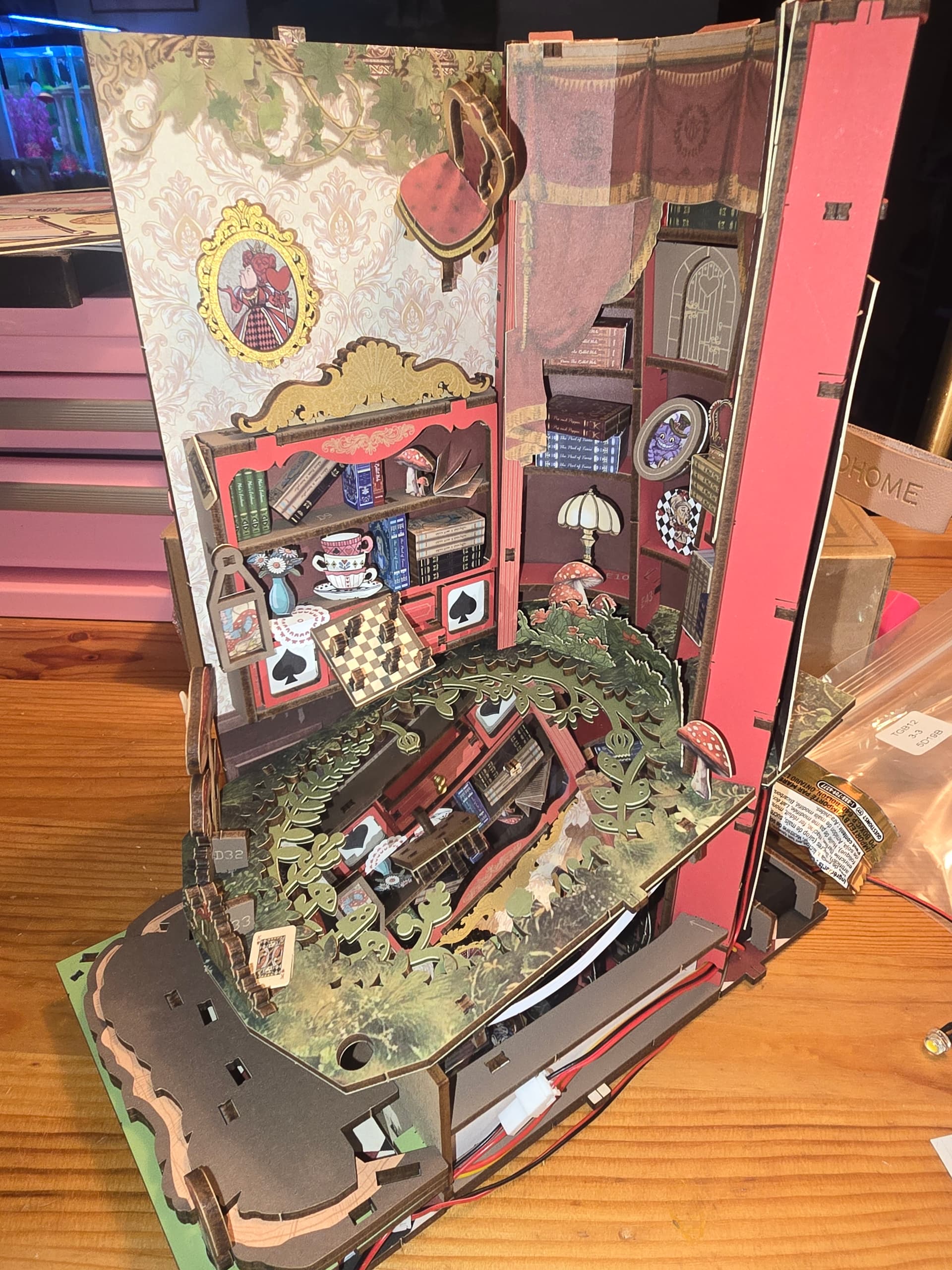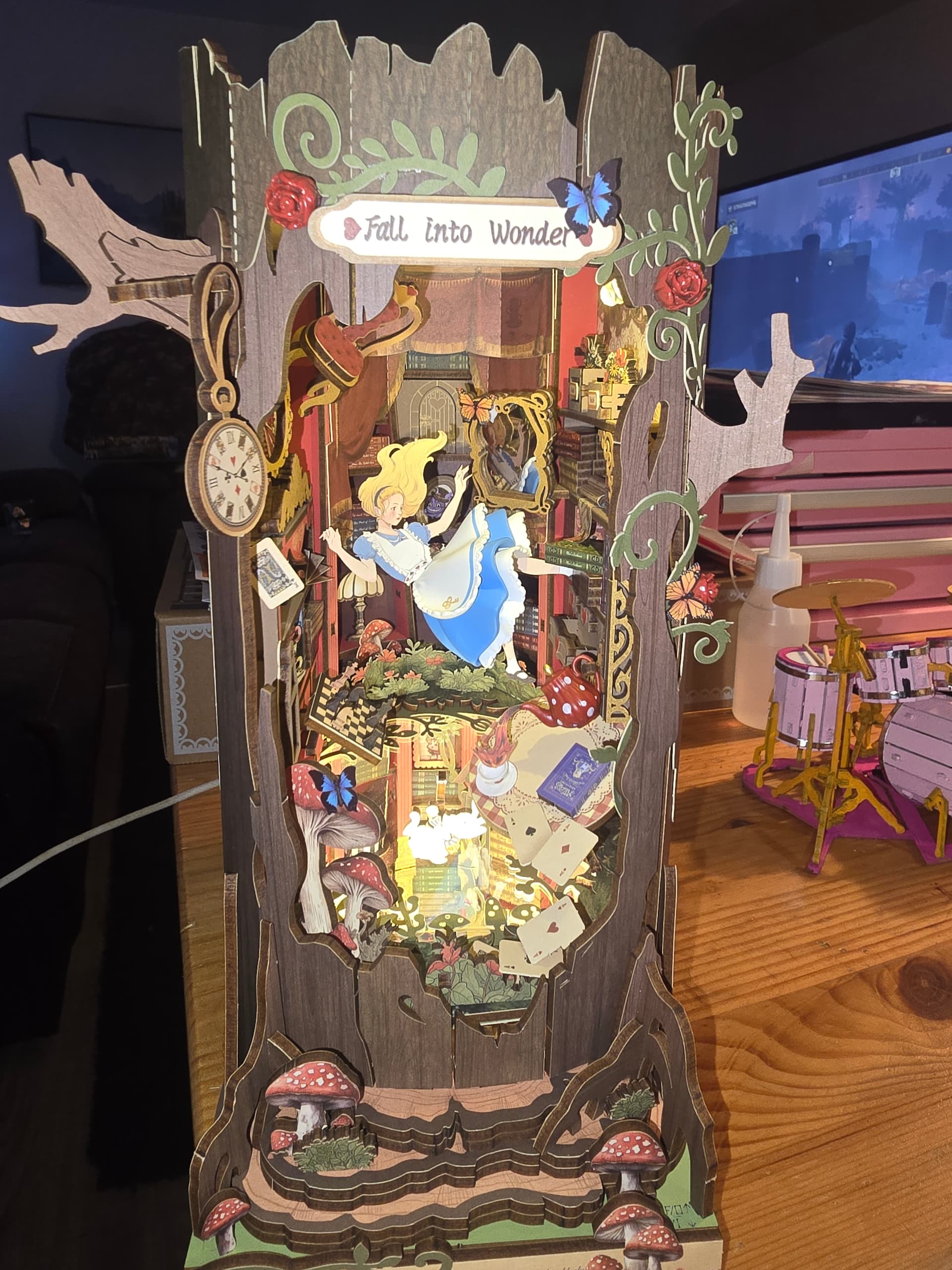 I have finally finished it!! I had a hickup but thanks to @Robotime I got a replacement piece right away and got right back to work! I had so much fun making this, It brought me back to when I’d watch the orginial Alice in Wonderland made in 1951 (Im not a big fan of the newer movie lol!) One thing I’d like to mention is that the plywood was quite thick and really nice to work with, I wasnt too scared about breaking any pieces I hope y’all enjoy the post and I hope it inspires you to do the same build!