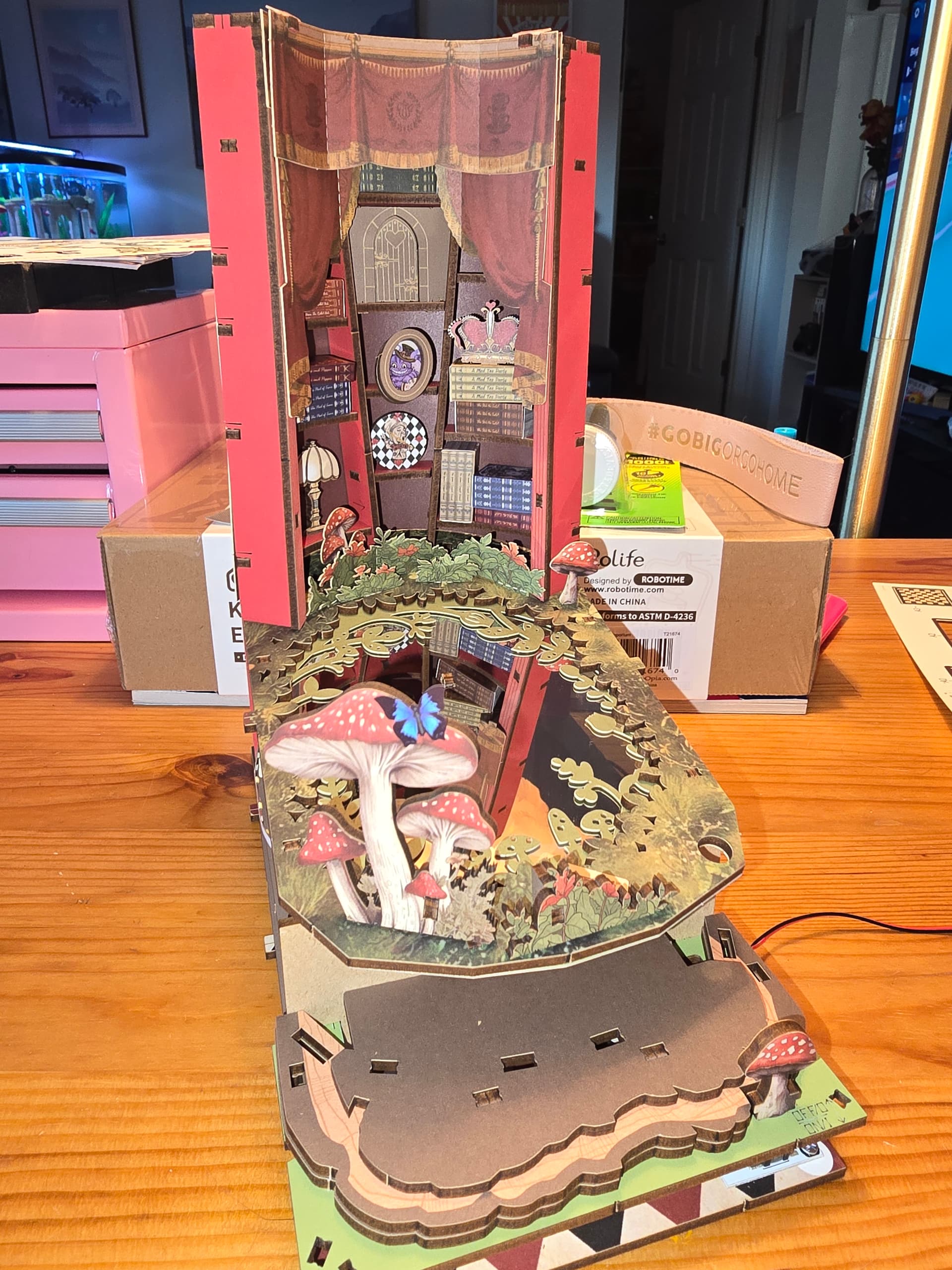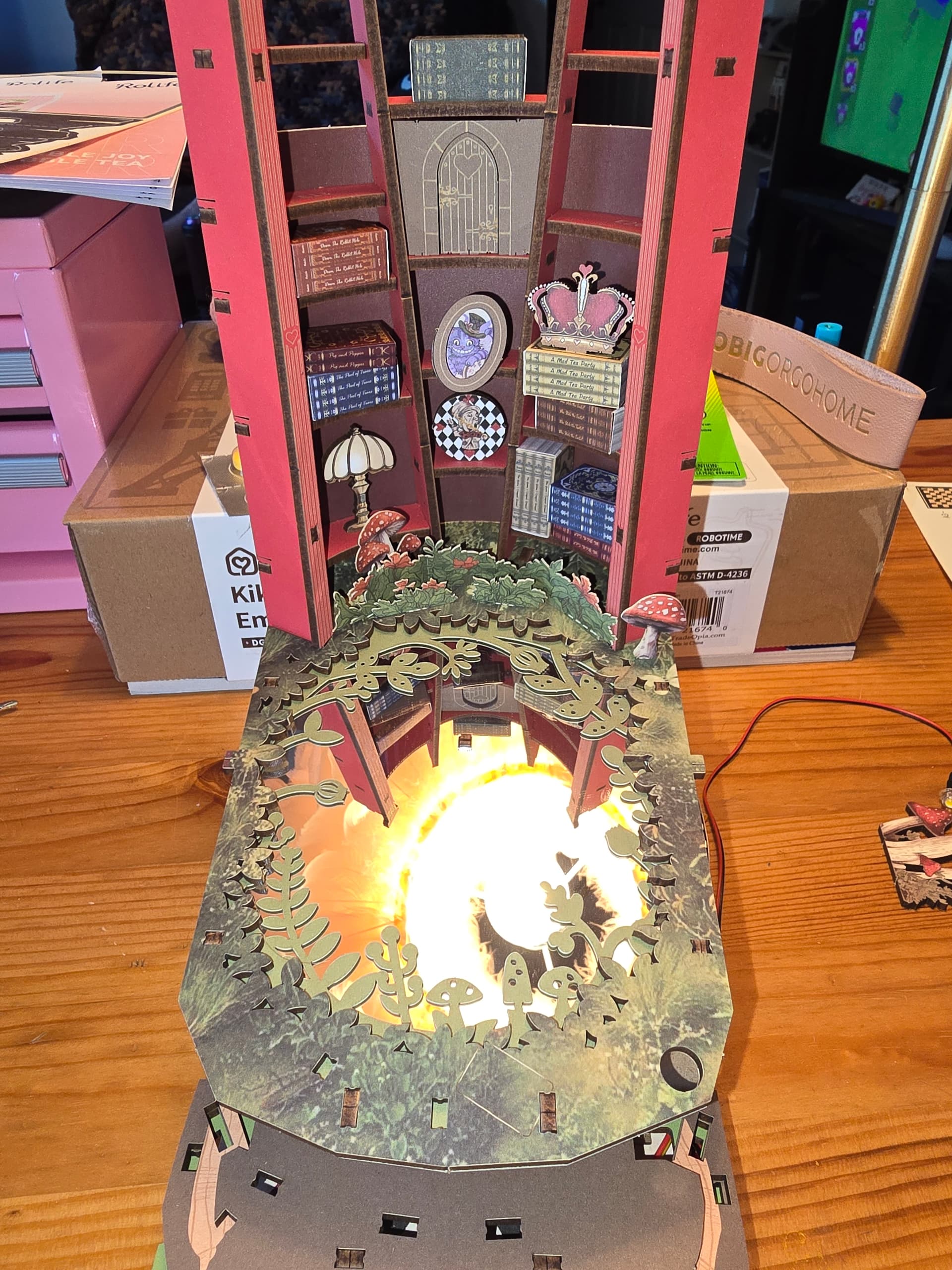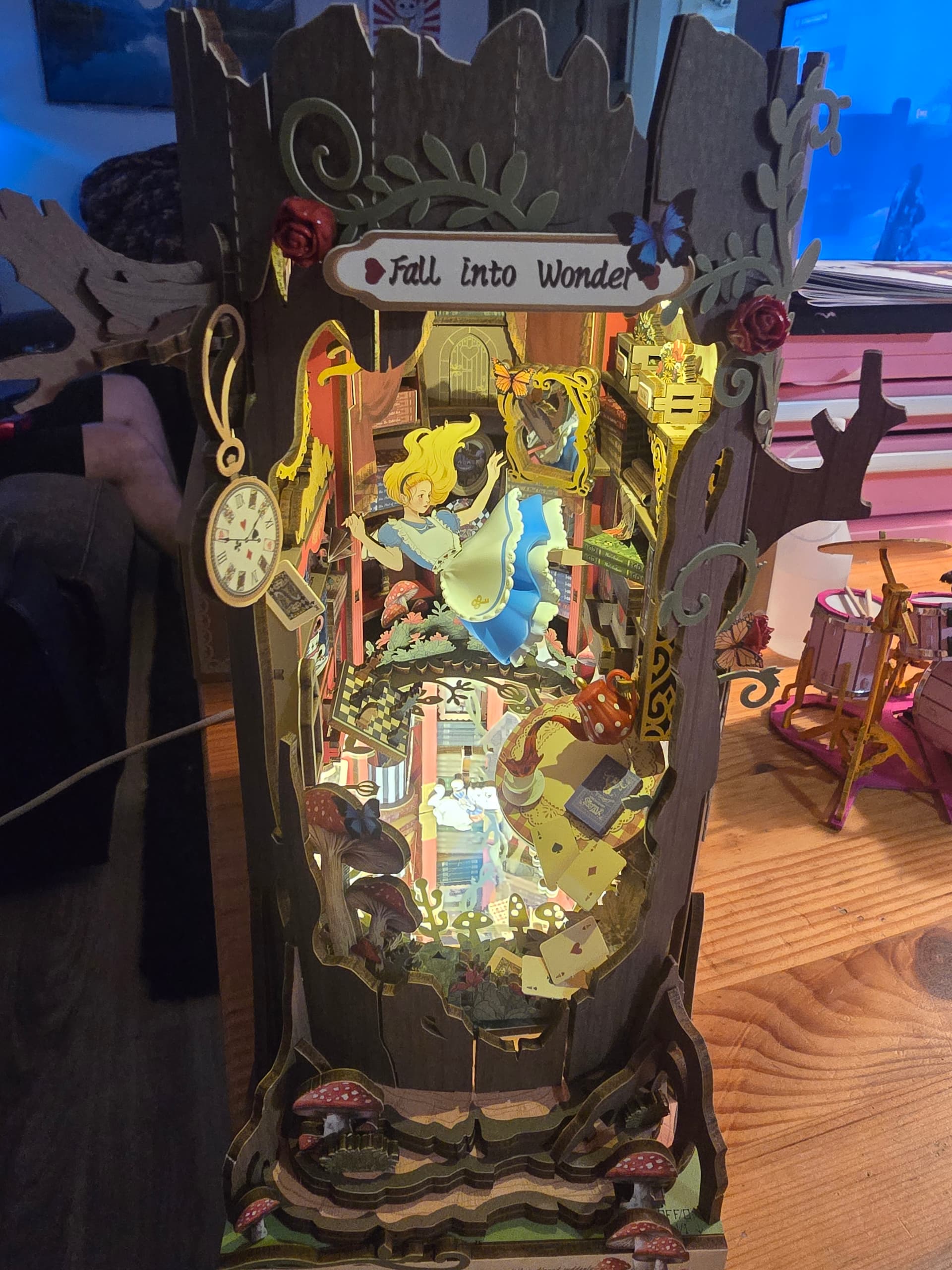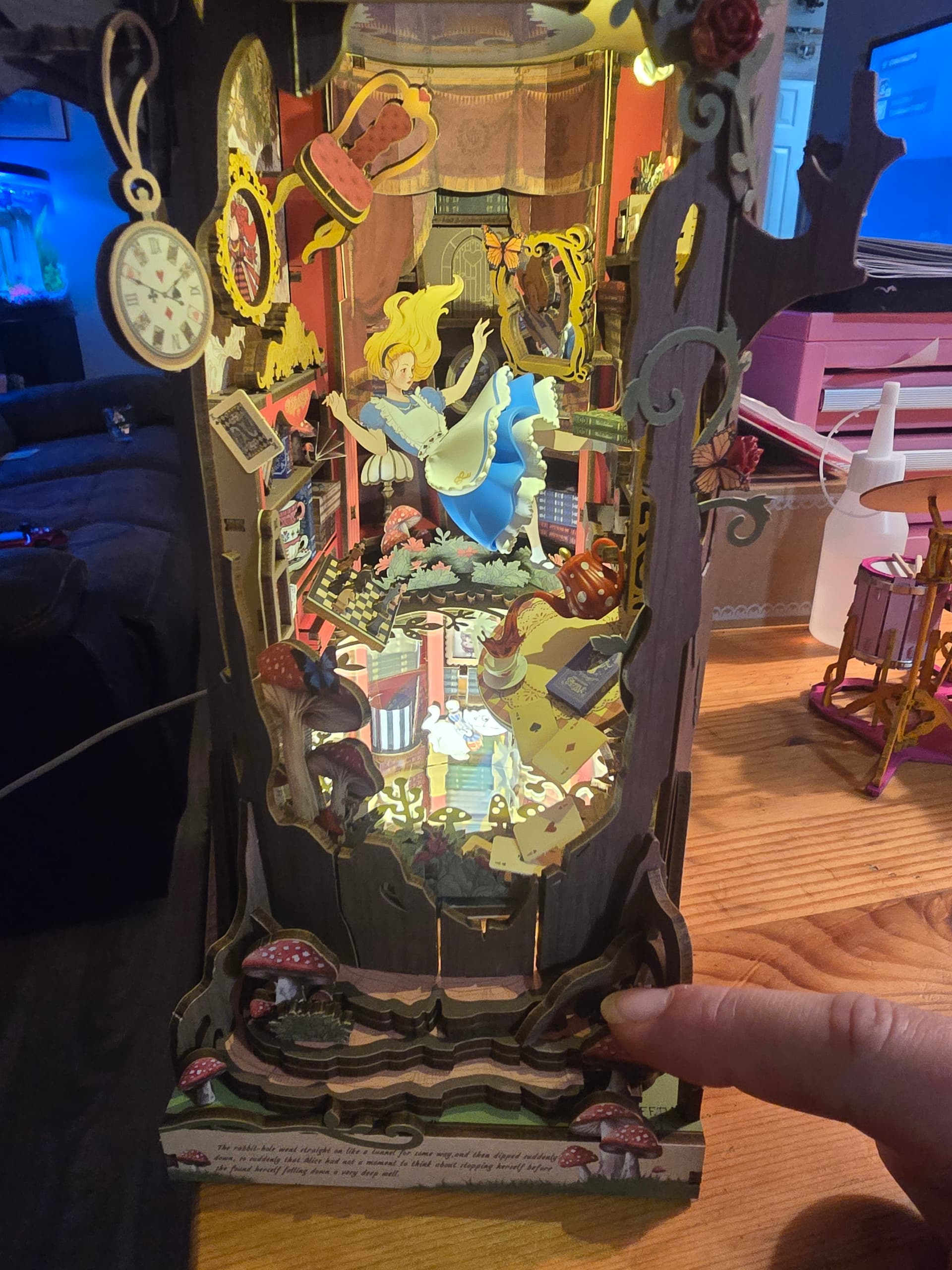 I have finally finished it!! I had a hickup but thanks to @Robotime I got a replacement piece right away and got right back to work! I had so much fun making this, It brought me back to when I’d watch the orginial Alice in Wonderland made in 1951 (Im not a big fan of the newer movie lol!) One thing I’d like to mention is that the plywood was quite thick and really nice to work with, I wasnt too scared about breaking any pieces I hope y’all enjoy the post and I hope it inspires you to do the same build!