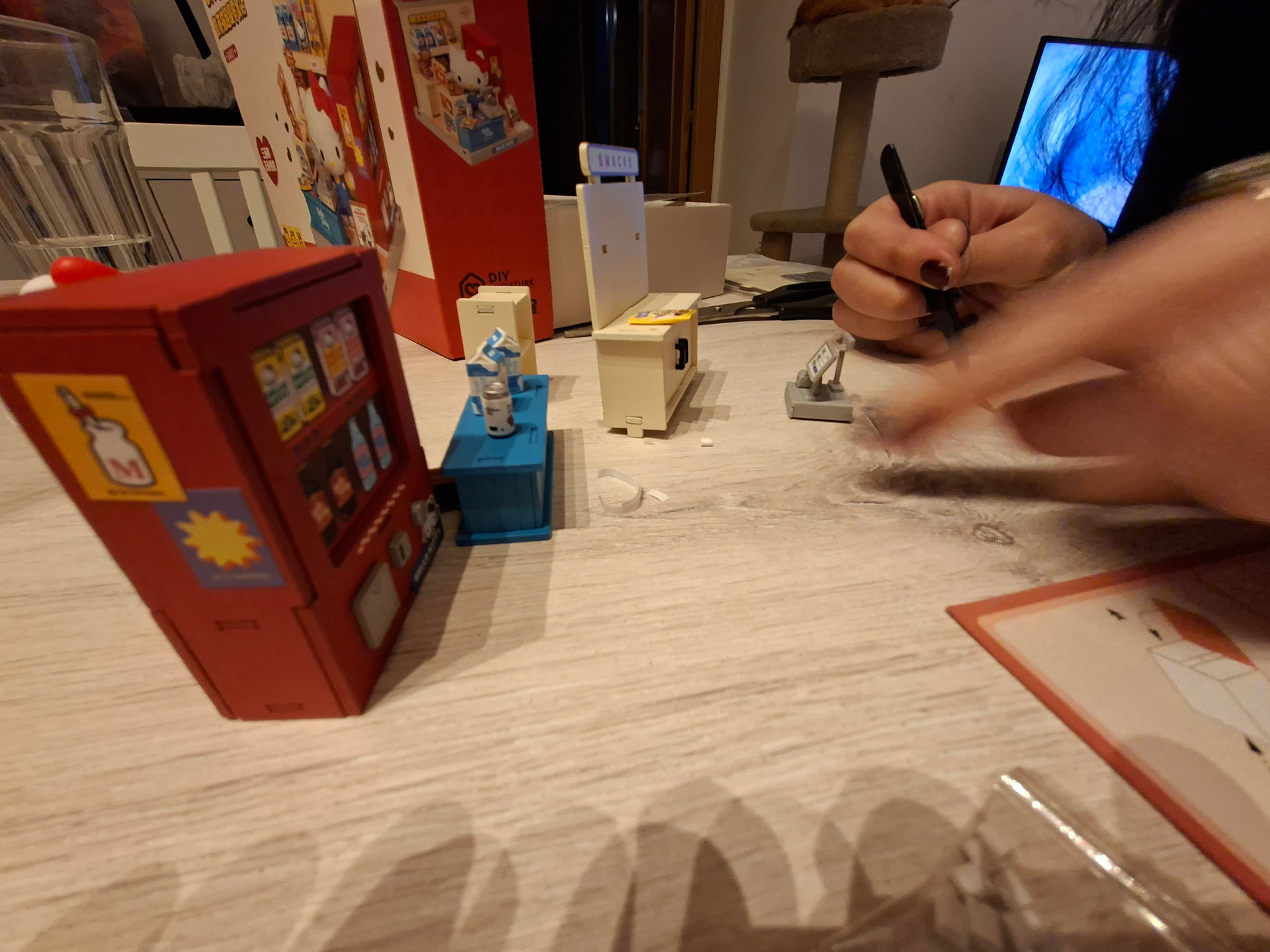 Out of all of them, she chose the Hello Kitty Supermarket, and honestly, it was the perfect choice. I don’t have many photos because while she was working on her kit, I was continuing with mine, and she was much more focused on building than on taking pictures, which is completely fine. I’m the obsessed one who takes photos of every single step to save the whole process in my album .