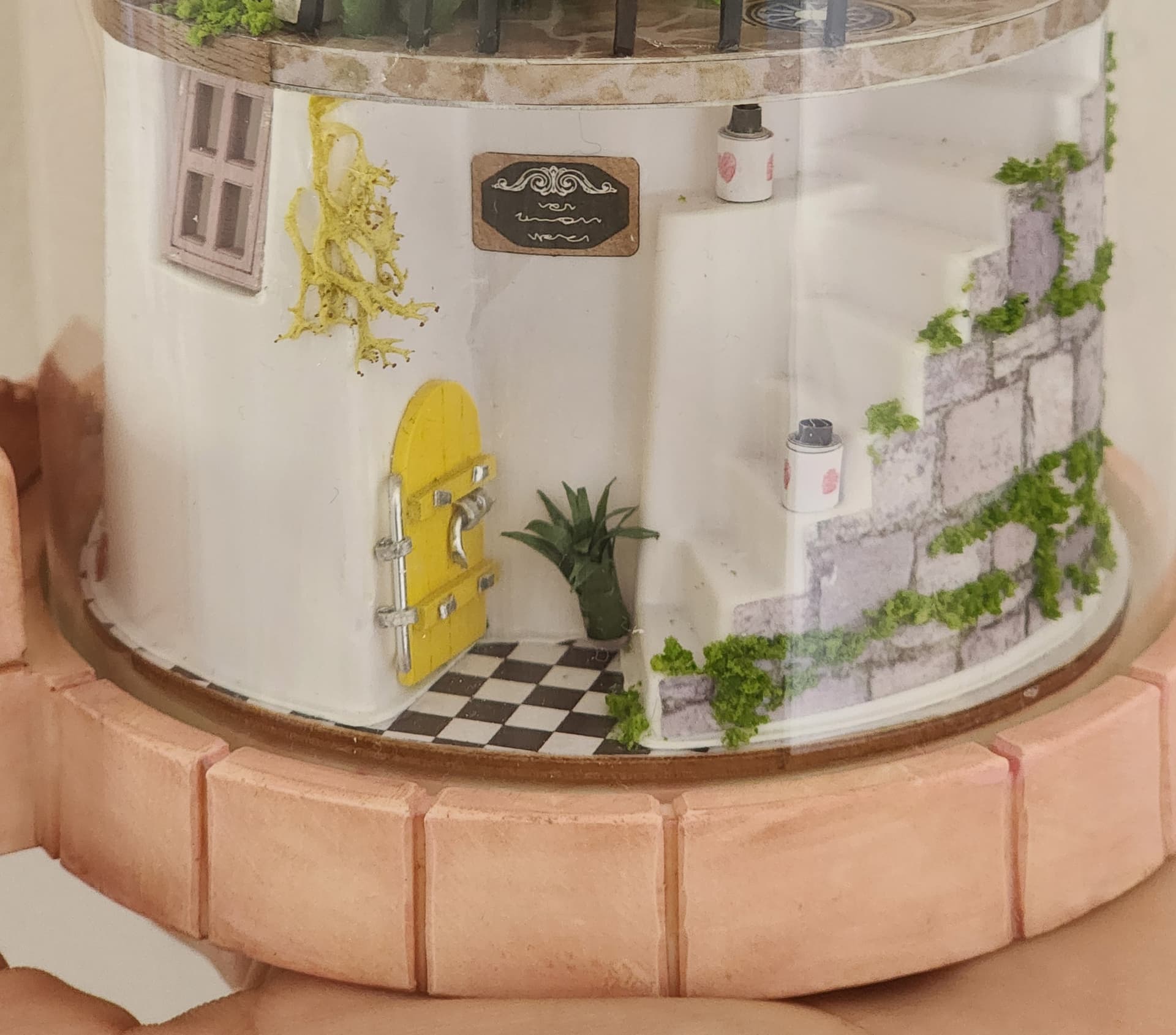 I added a few extra plants into this kit to fill spaces and just because i didnt love some of the ones that were in the kit. I didnt do much else different for this one. I added moss and way more hanging lichen that the kit called for, the one thing i did do that i absolutely love how it turned out was this window… it was supposed to be empty with just a light but with the perfect space to fill i couldnt leave it empty!