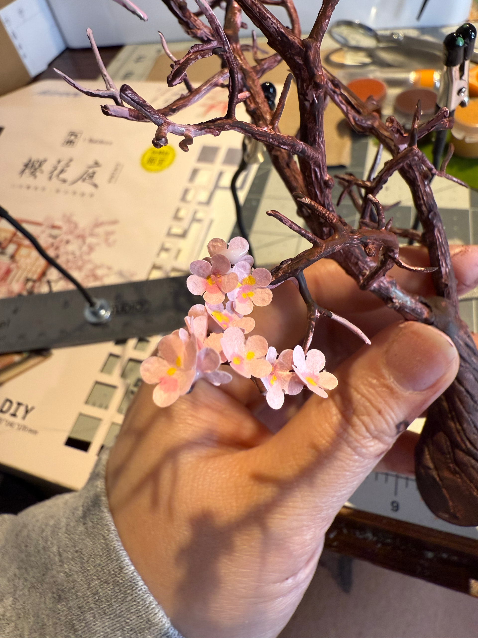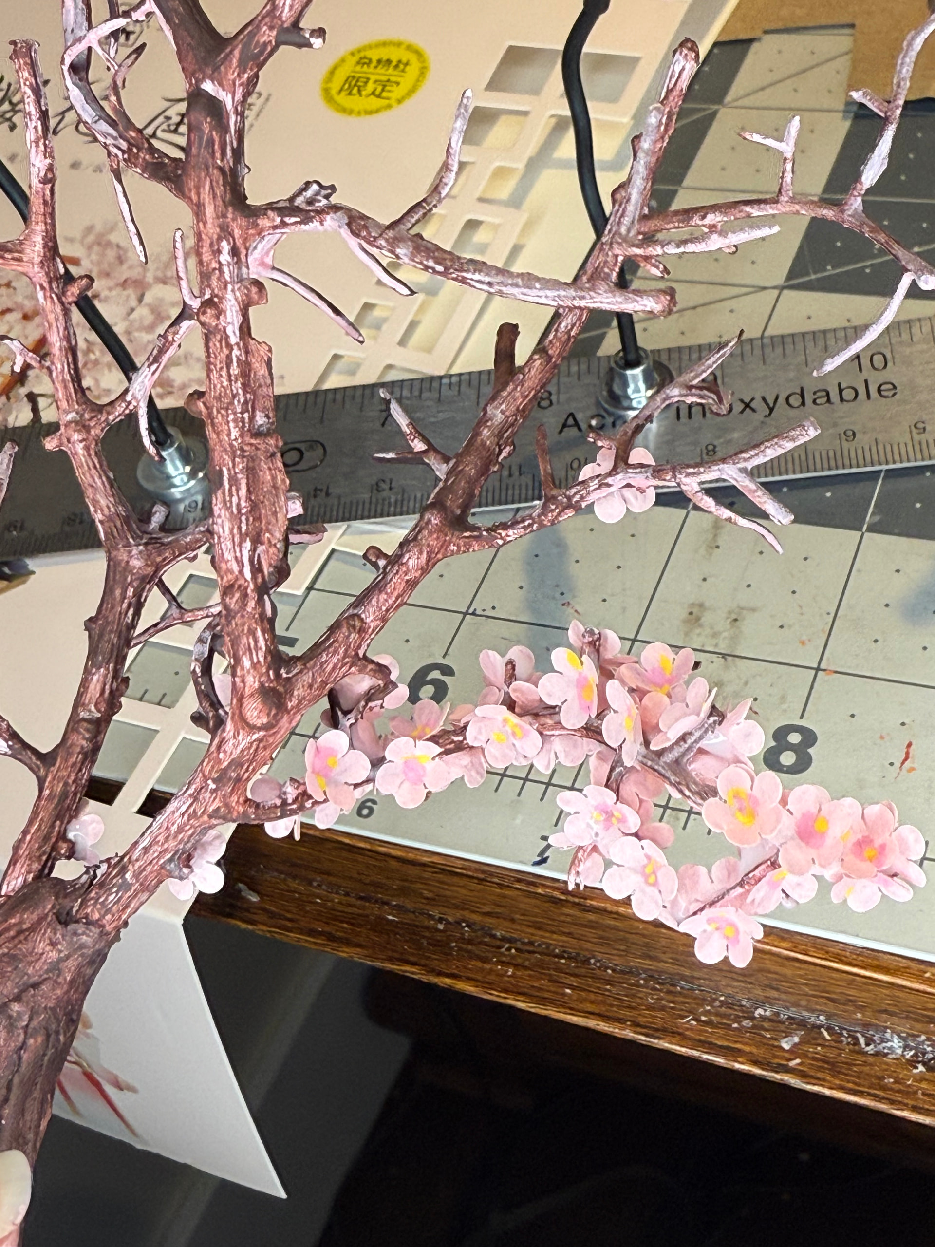 For the petals, I pressed the centers with a dotting tool and glued them organically onto the branches