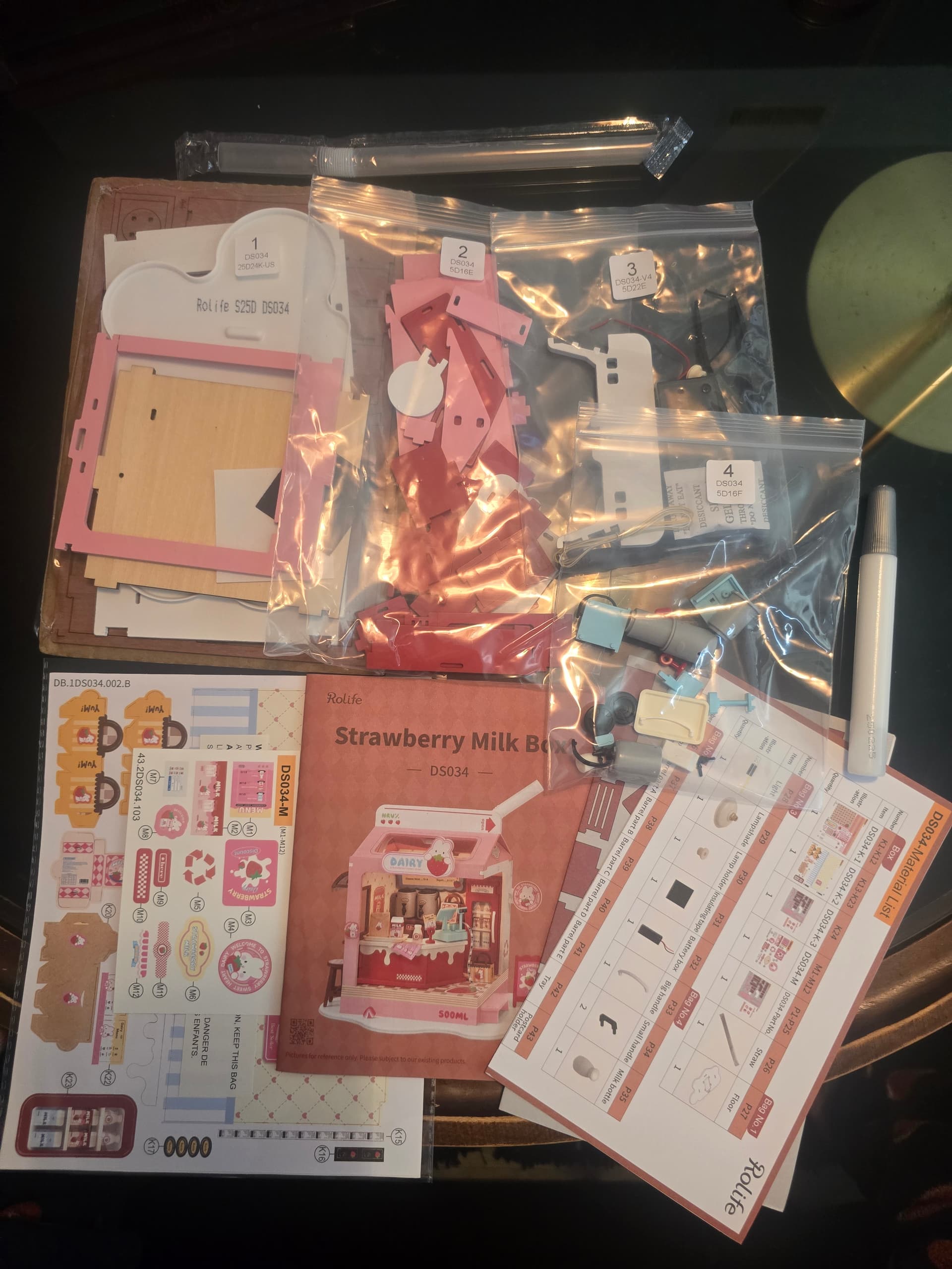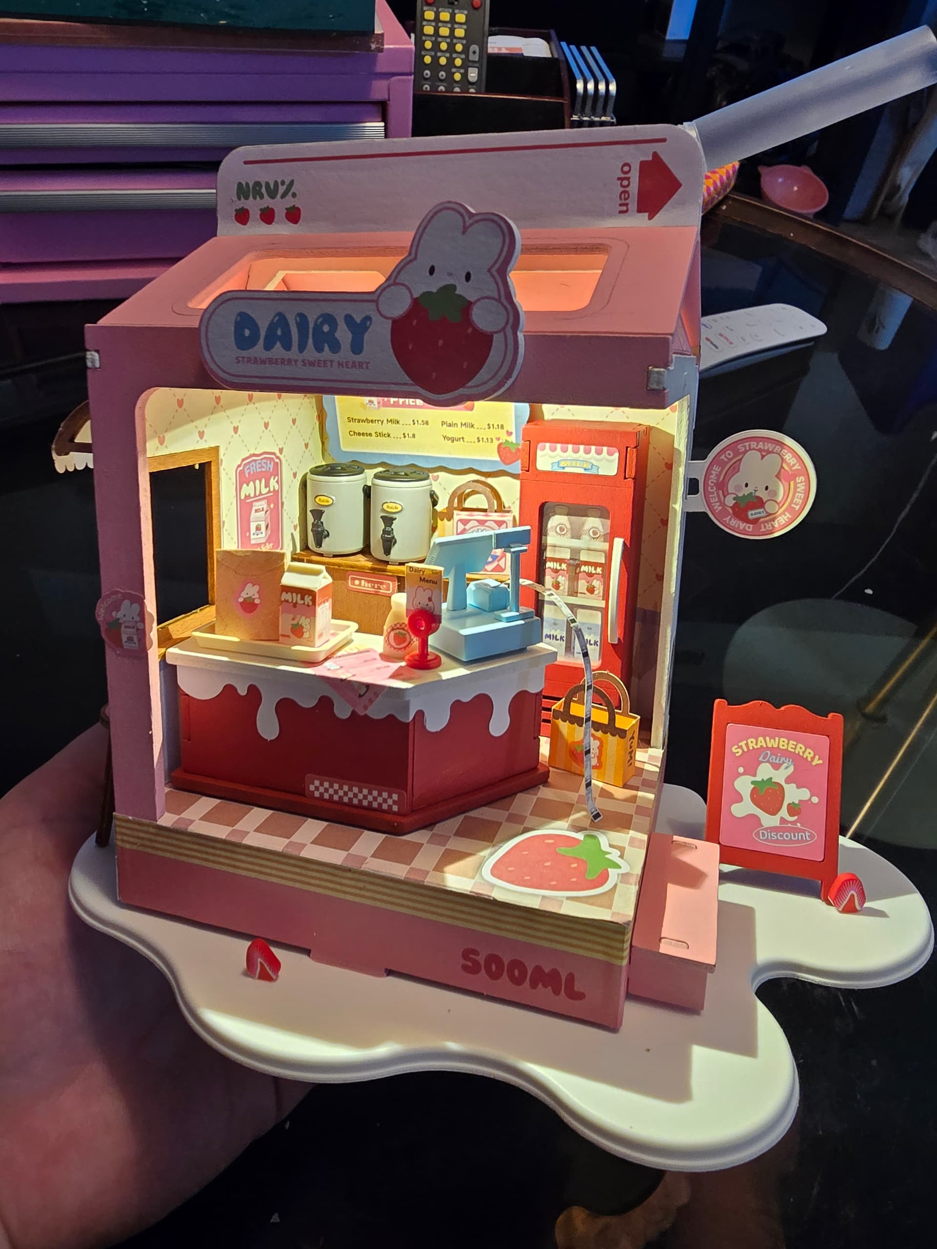 On page 16: There’s a window umbrella. To make the tassels go downwards and youd like a straight line across, use the back of your exacto knife, push the blade against the wooden supports (so youre using the back of the exacto knife as a guide) then slightly push the paper umbrella to make a crease. It should appear like its falling, instead of flaring outwards.