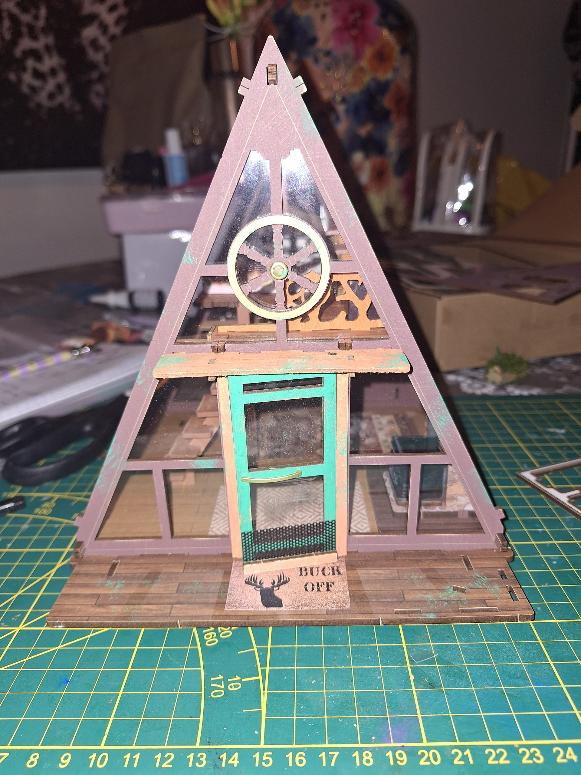 I made progres on the A-frame. I also made the sunflowers but not sure if they fit my mancave type cabin as i think they wouldn’t be found in a real mancave. What do you think?