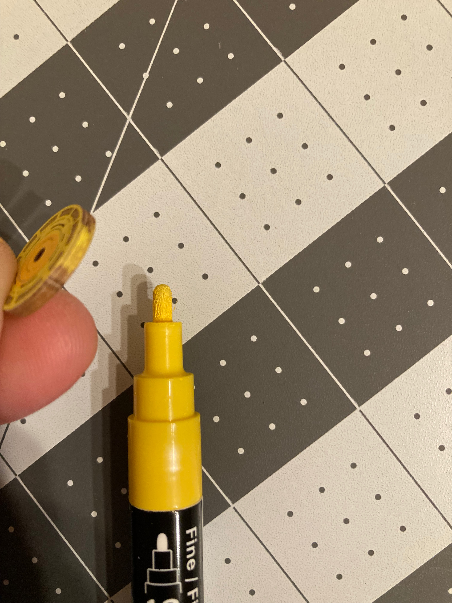 Already finding use for my acrylic markers. It seems like some colors don’t need and exact match. This piece already has several shades of yellow. So basically any shade will look good.