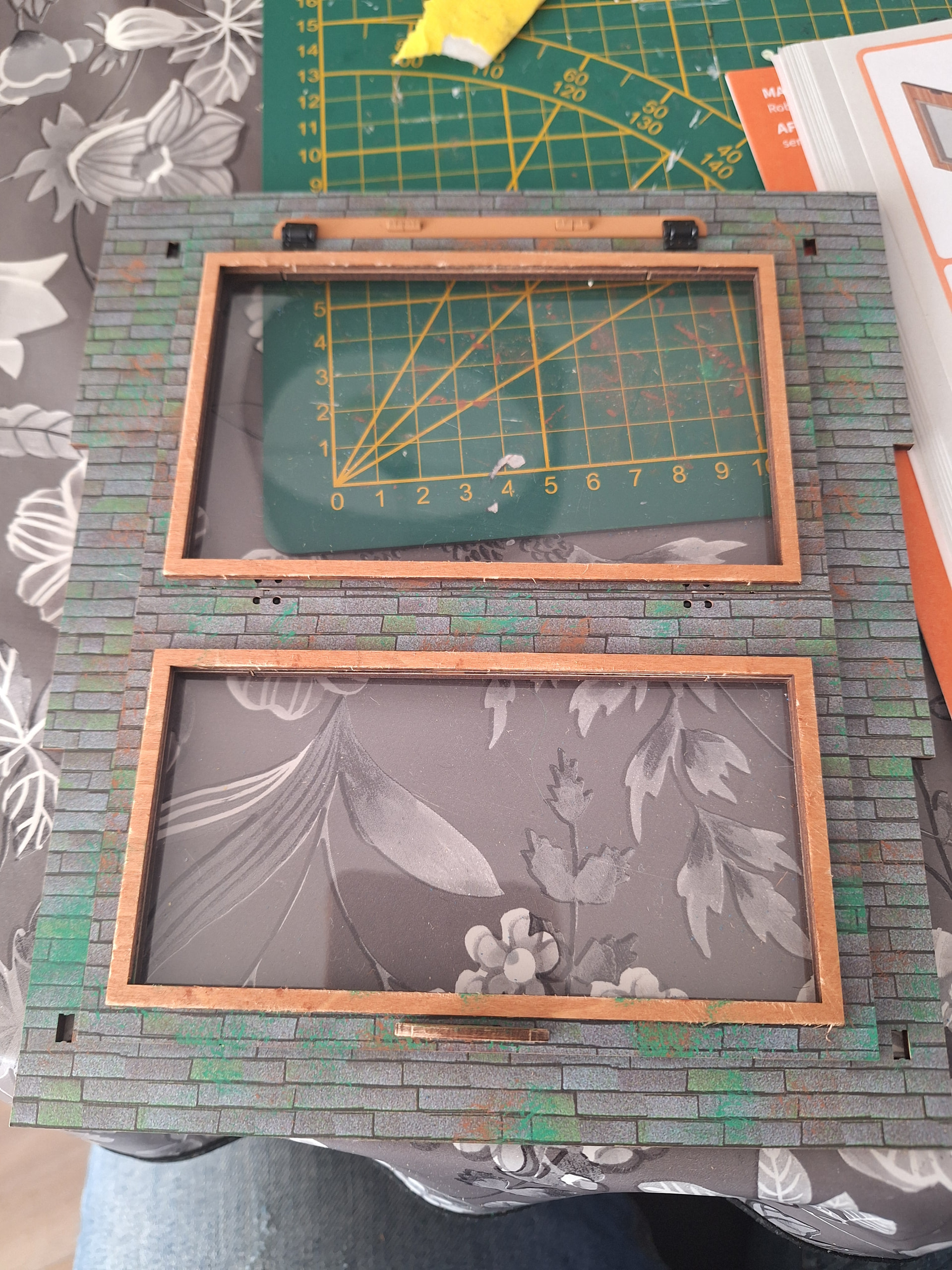 Had a hour before work and started on the bottom of the A-frame. I had a poster to cover the one on the wall on thenfirst floor but it was to small so need to make it again. I put in a new door mat. I changed the white door frame and made it brown. I now see i wanted the doorna darker green but don’t have the right marker for it so i will leave it. Tomorrow i finally havea day off and hope to make large progress on the kit.