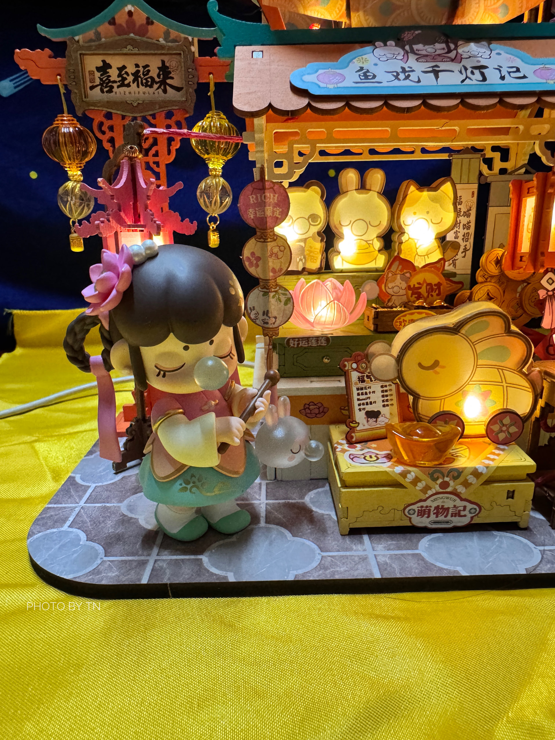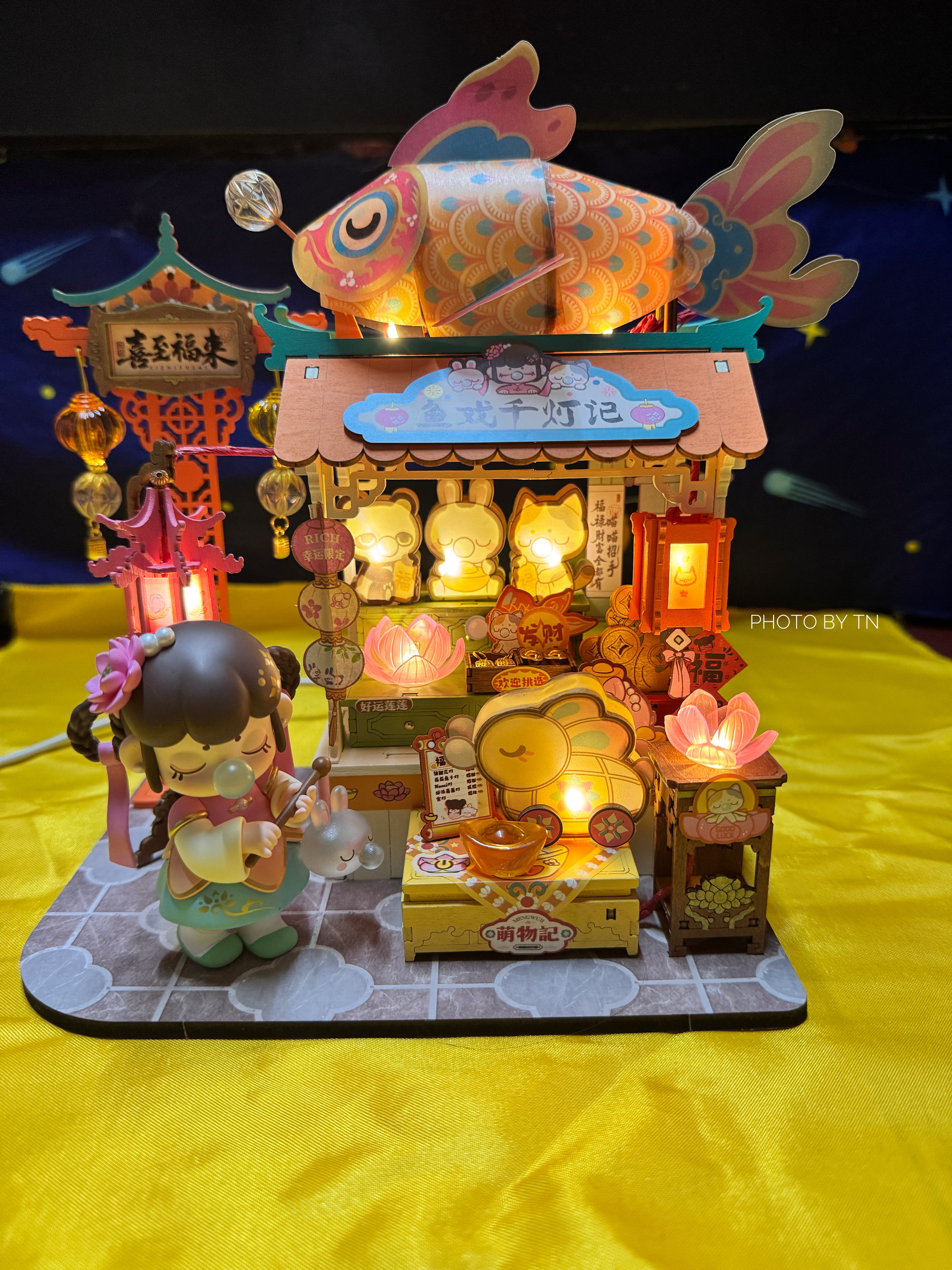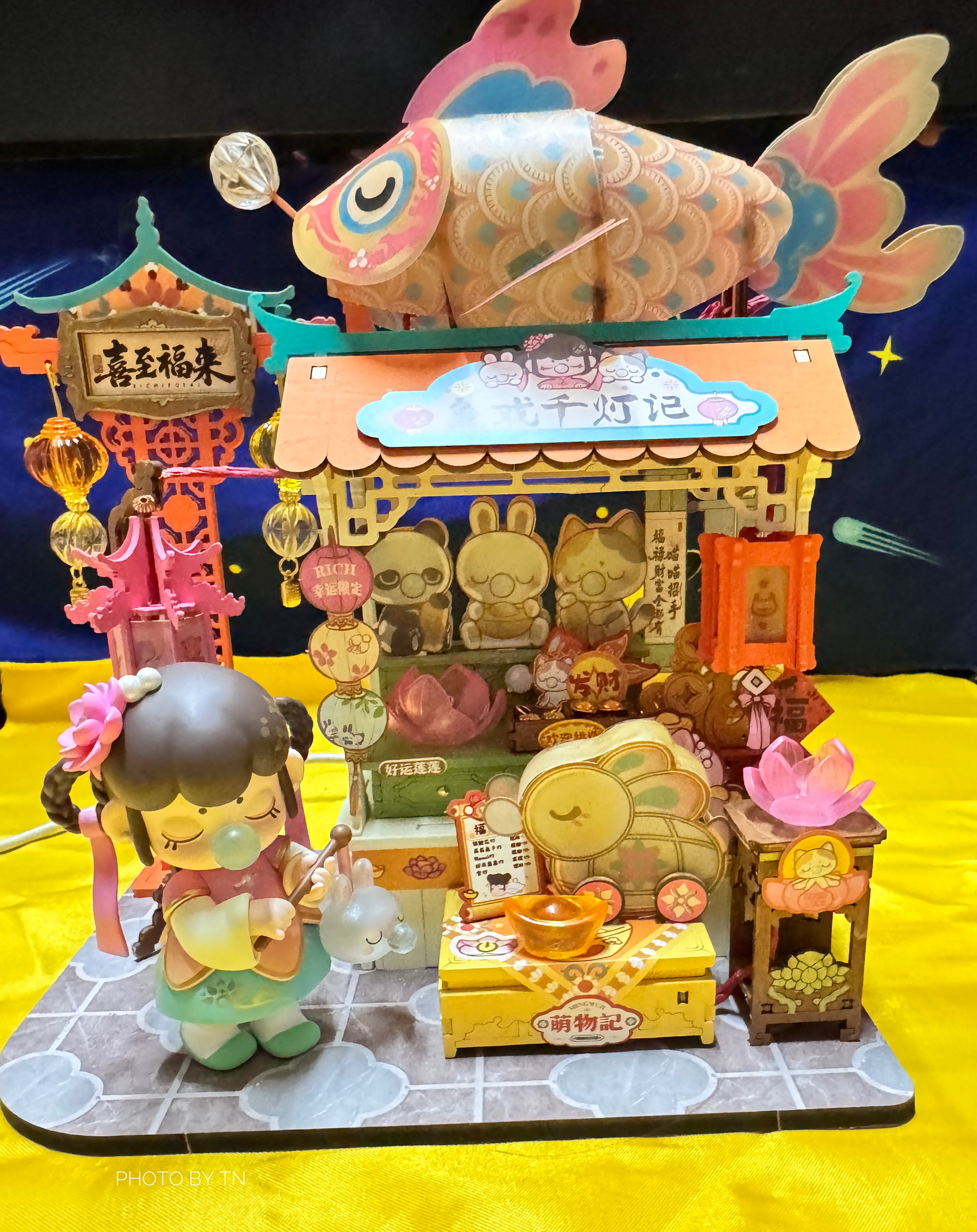 The stall is like a hidden treasure amidst the bustling street. Wooden shelves display handcrafted pieces, carefully crafted with patience and love. As night falls and the lanterns are lit, the entire space shimmers like a tranquil lake under the moonlight, inviting visitors to stop, breathe, and take home a little magic.