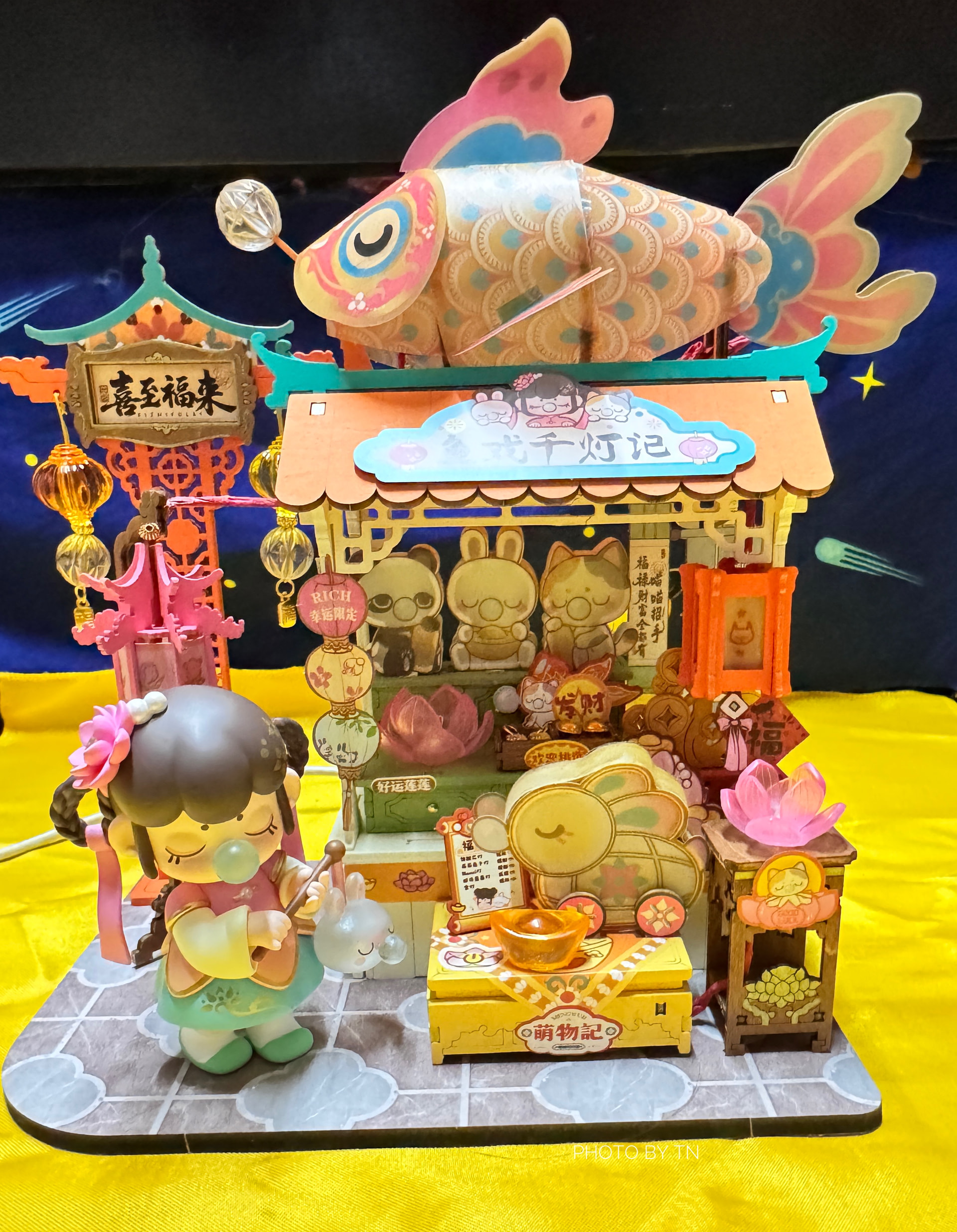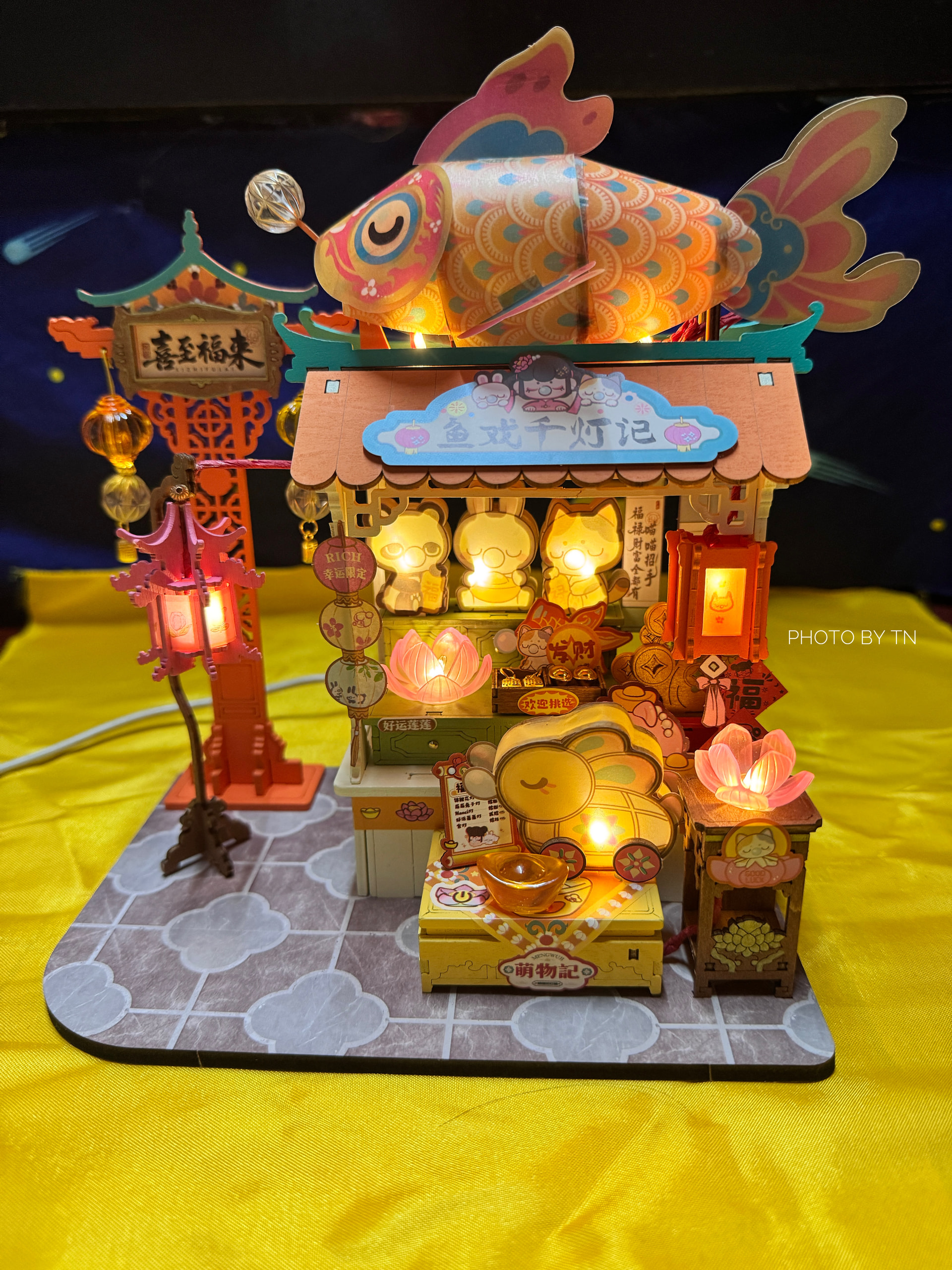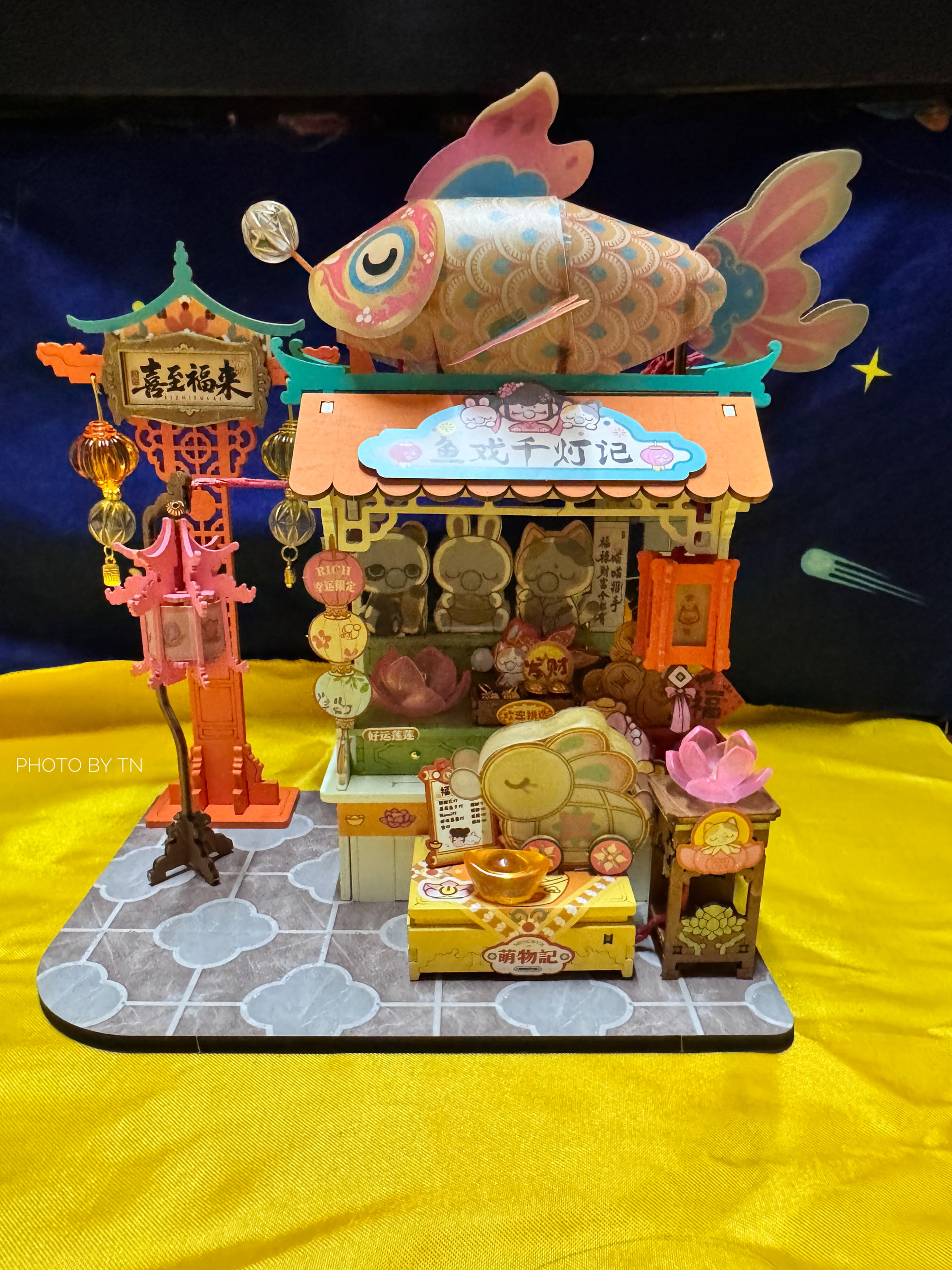 The Koi Fish Lantern Stall is a warm and magical little corner where soft light and colors blend together. Hanging on wooden slats, the exquisitely shaped lanterns seem to float in mid-air. The large lantern embodies the spirit of the Koi fish—a symbol of perseverance, good fortune, and peaceful dreams.