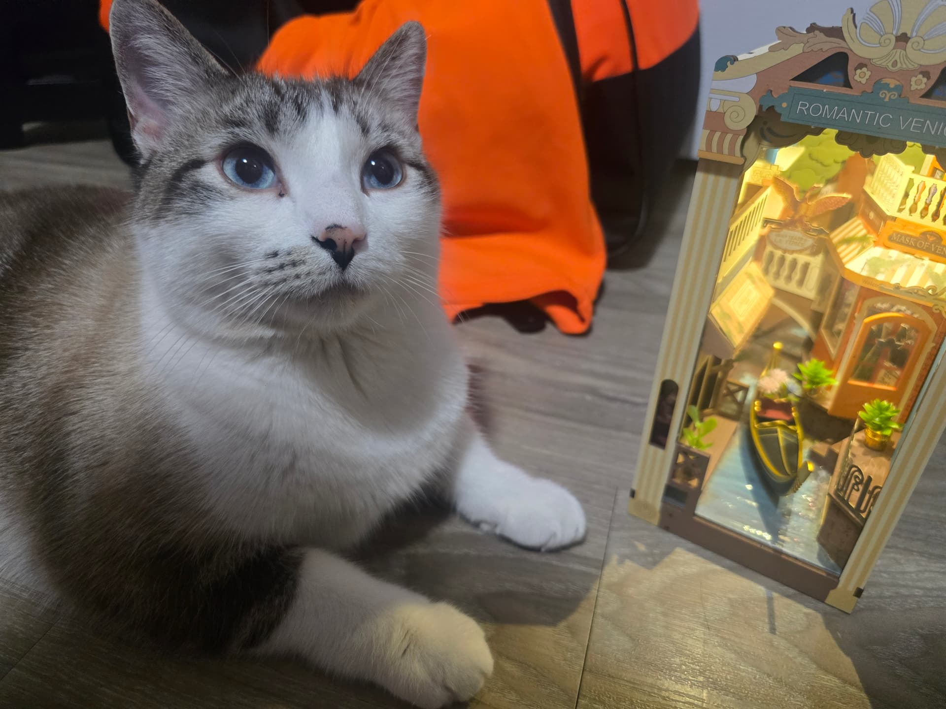 The middle kitty, Kakorat. The Romantic Venice book nooks river matches his eyes perfect This booknook and a photo of him was the first thing i posted to this group too