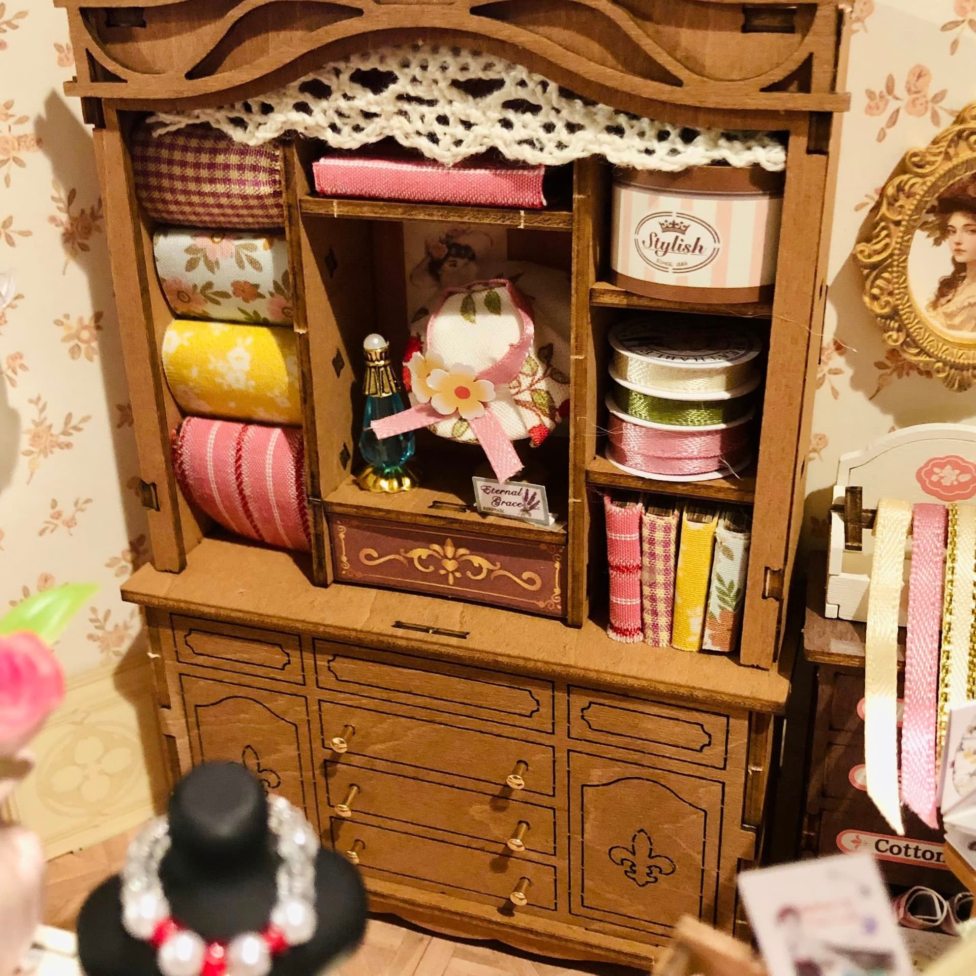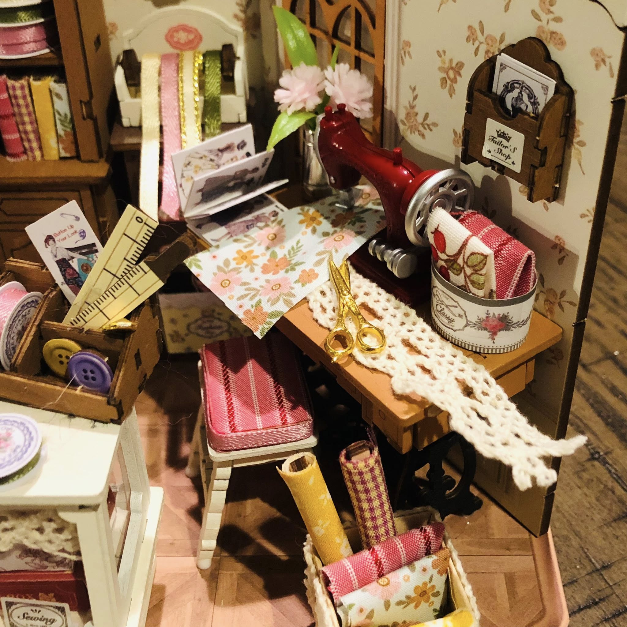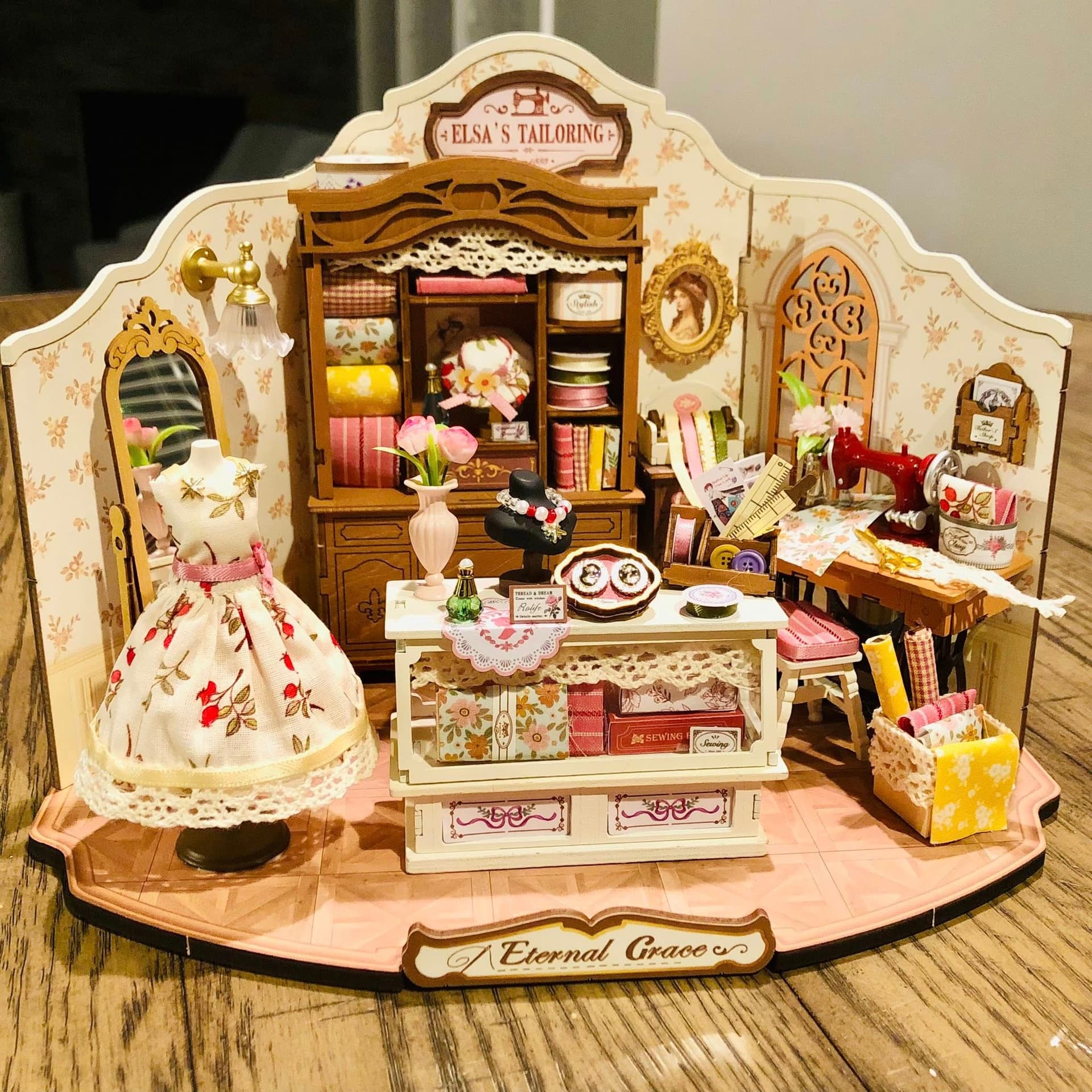 Just finished my latest miniature kit — Elsa’s Tailoring by Rolife! This one is extra special with all the sweet little dressmaking details — tiny fabric rolls, measuring tape, and even a miniature sewing machine that make it feel like a real little shop. The soft glow of the light adds such a warm, sentimental charm… it’s like stepping right into a cozy corner where creativity comes alive.