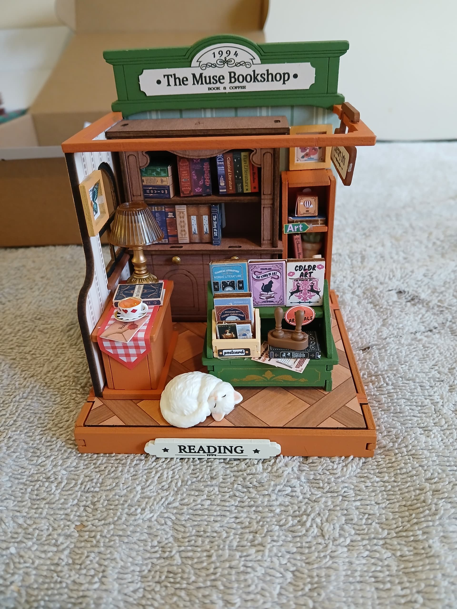 I love how many of the kits either have little pets in them or leave space so you can add your own miniature animals to them. Book nooks like the Floral Corner and the Puppy’s Cozy Villa are ones that I relate to more because of this. This is my Samson, and he loves to help with my kits.