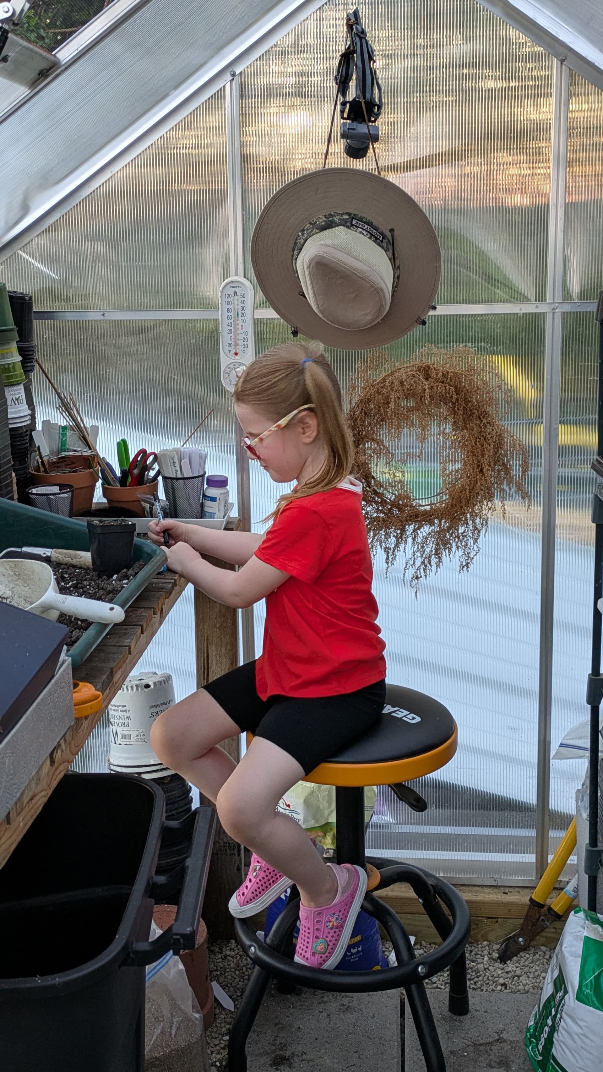 This is my daughter working in my mother’s greenhouse. It reminds me of how I DREAM to have a greenhouse one day like Cathy’s Flower House DG104. A relaxing space where I can tend to my plants, create, and have some me time. Until then, I’ll use my mother’s little space.