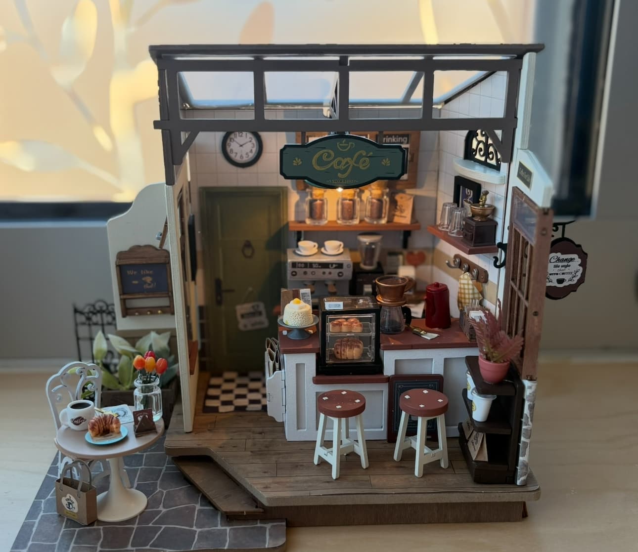 Where I live there is a coffee shop down a cobbled street called Coffee Culture. It has a similar vibe to Rolife DIY Miniature House - Flavory Cafe DG162. With the best coffee blend in town, a patio of seating outside and the best fresh bakes!