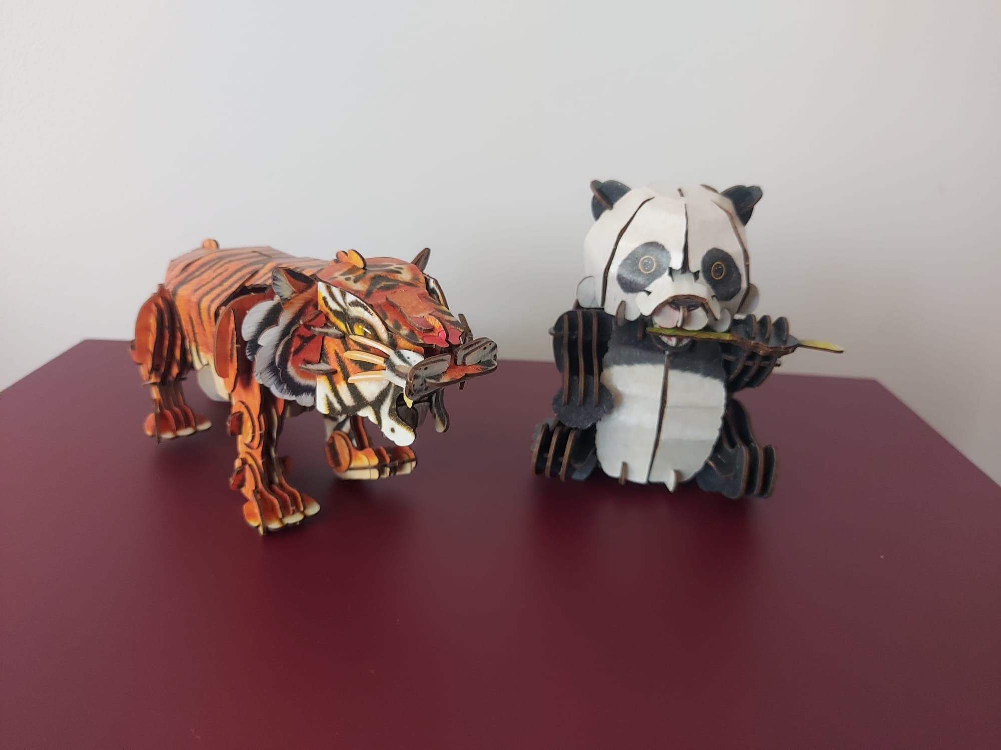 So the result is that my goddaughter is more focused and finished quickly her Panda bear (just need some help with pressing the parts together harder), I think, as it was a paper and they were both a bit scared to rip off the parts. And my godson has more difficulties, but still was proud that he finished his piece. (He said I can make it and give him a finished set to display in his room ) But my beautiful goddaughter thought it was really fun, so the next step is to buy her a wooden flower to assemble