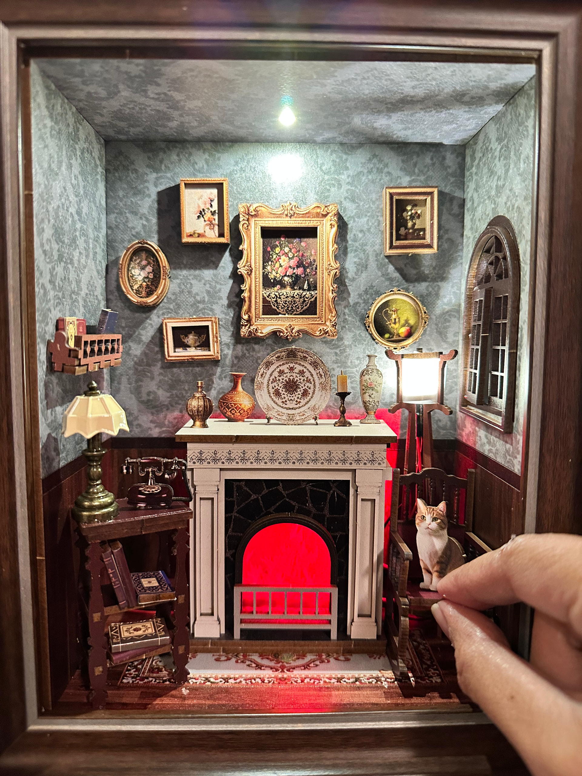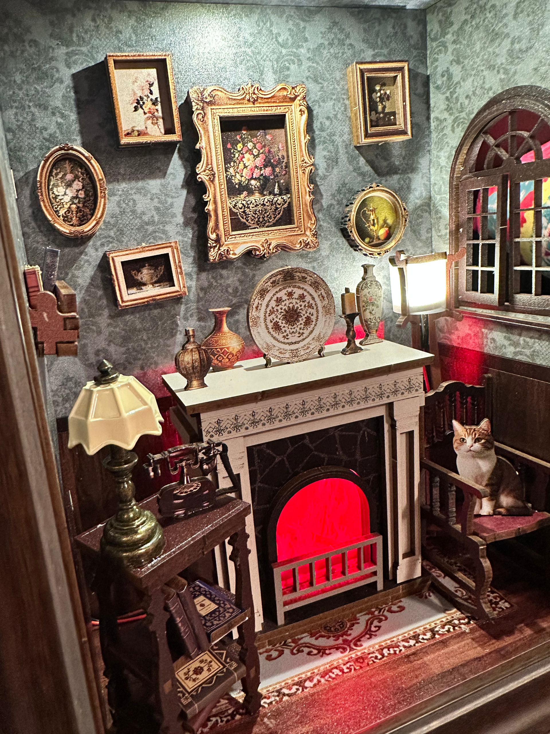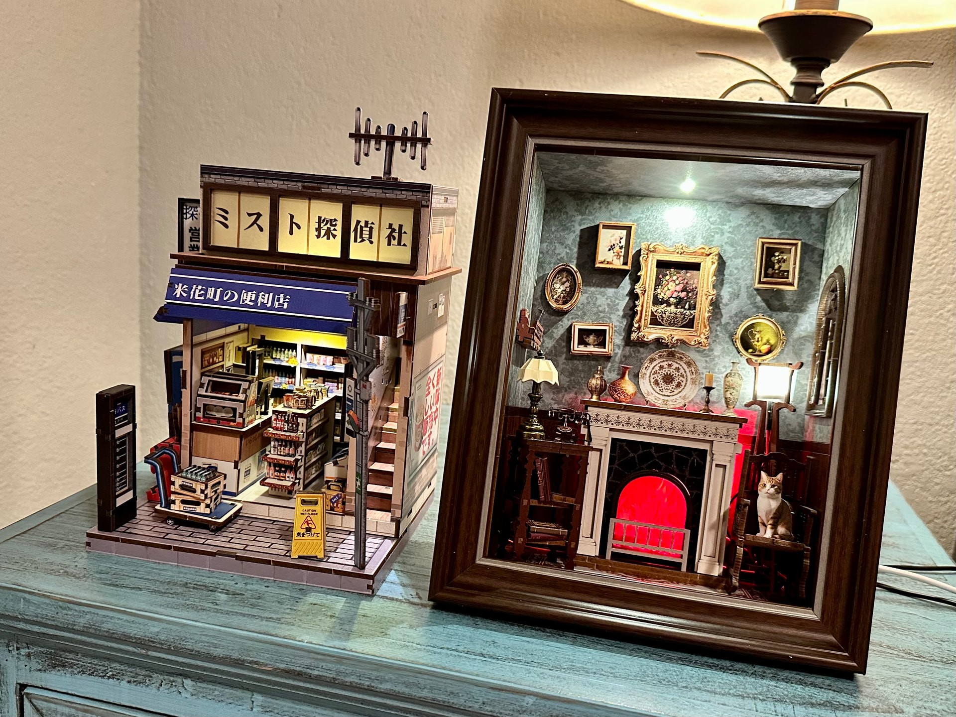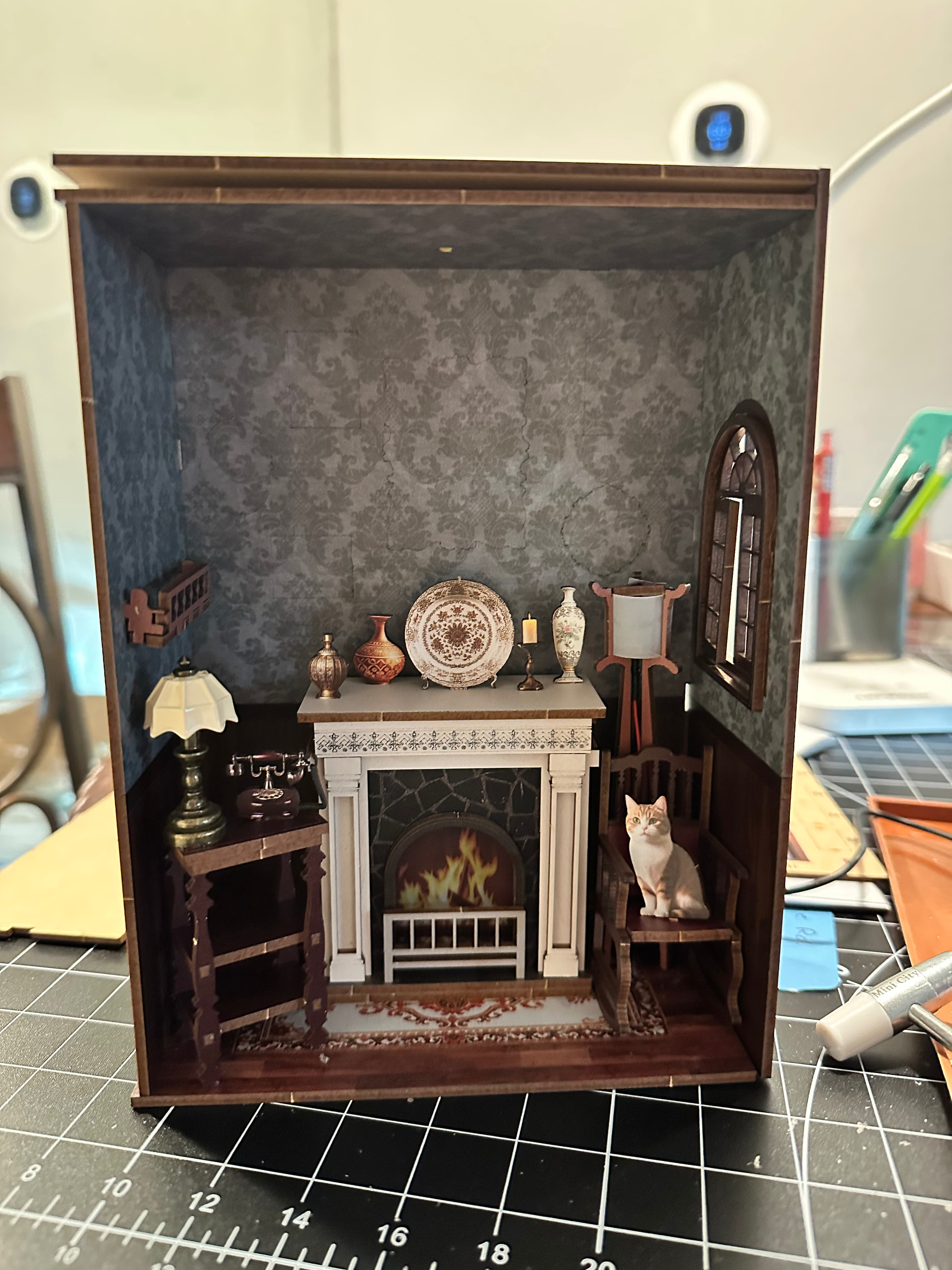 This kit, Hearthside Whispers, only took me about an hour to build. The only thing that was challenging was the lamp on the right side of the fireplace. It was fiddly and a bit of a pain but manageable.