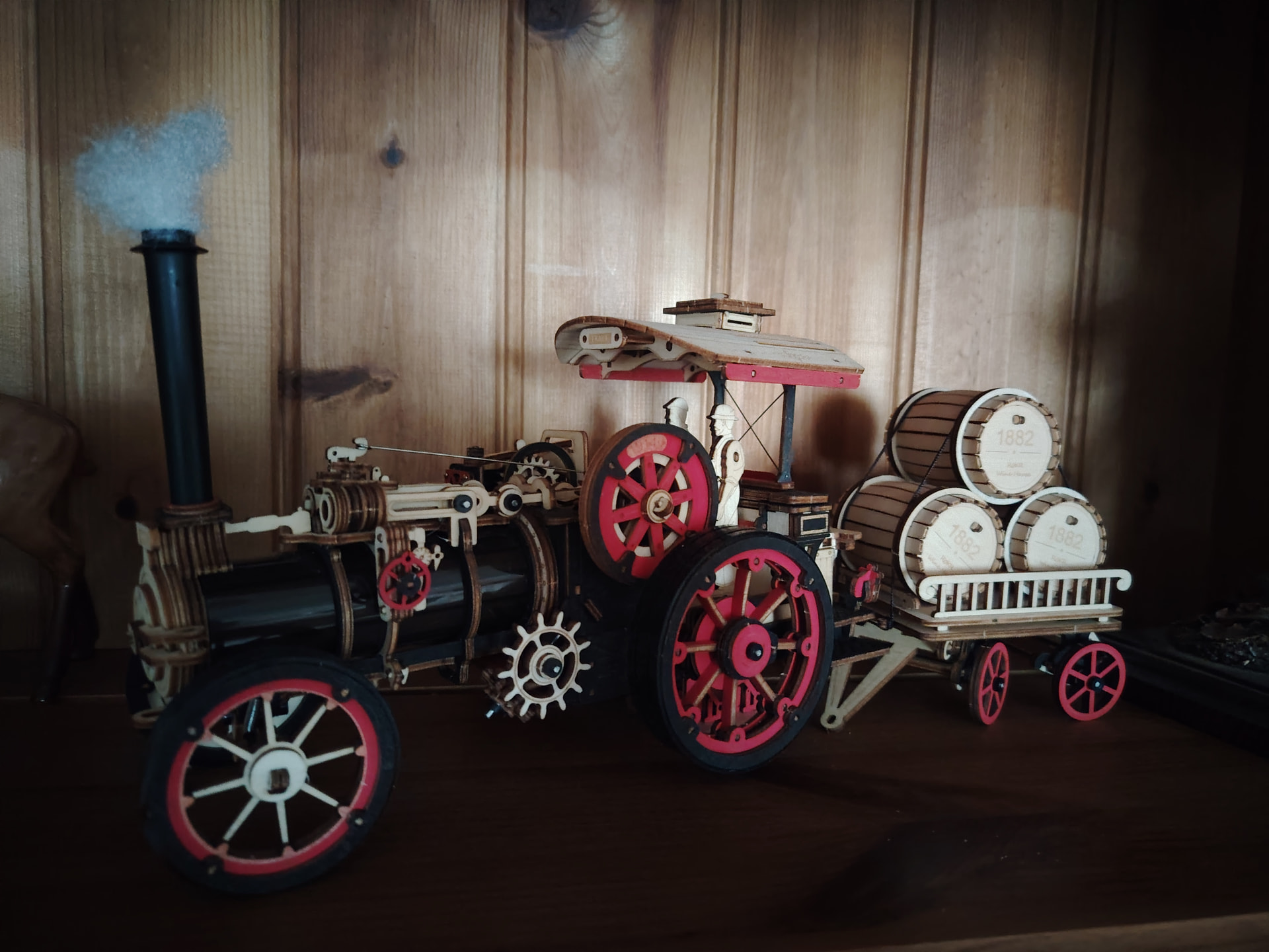 Another project complete, and what a Labour of love this was! Really detailed and may part that so beautifully came together. Had to disemble and re assemble to get the cogs lined up perfect to work but so worth the effort. The lights really add a special feature to it.. And the cotton wool steam is such a fantastic finishing touch that really brings the engine to life! A beautiful piece on proud display in the living room!