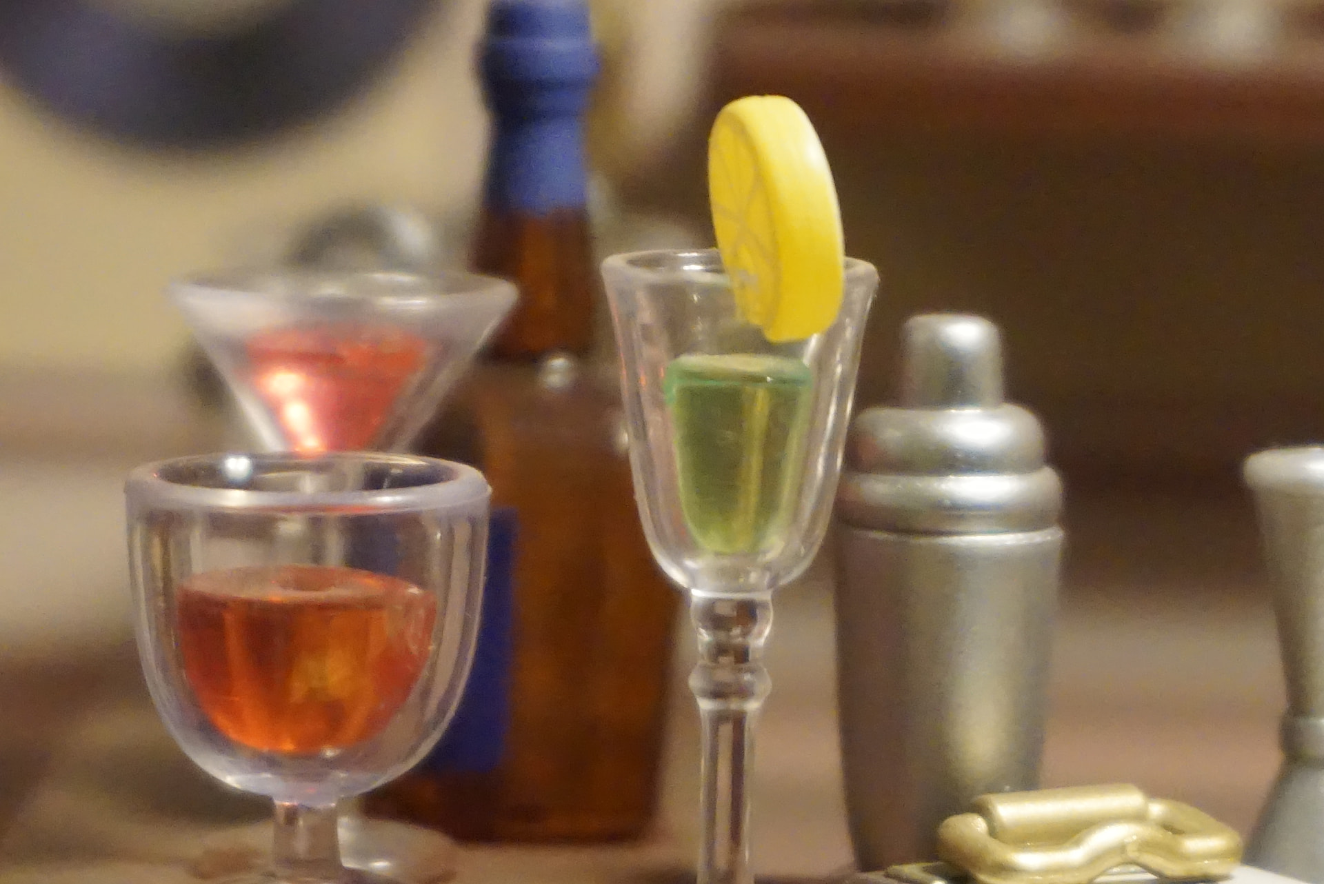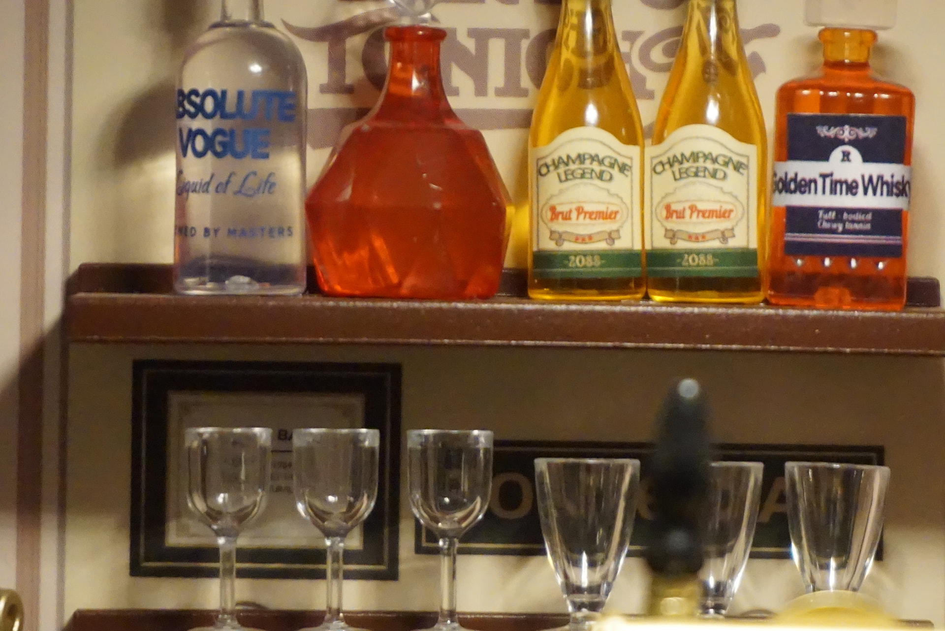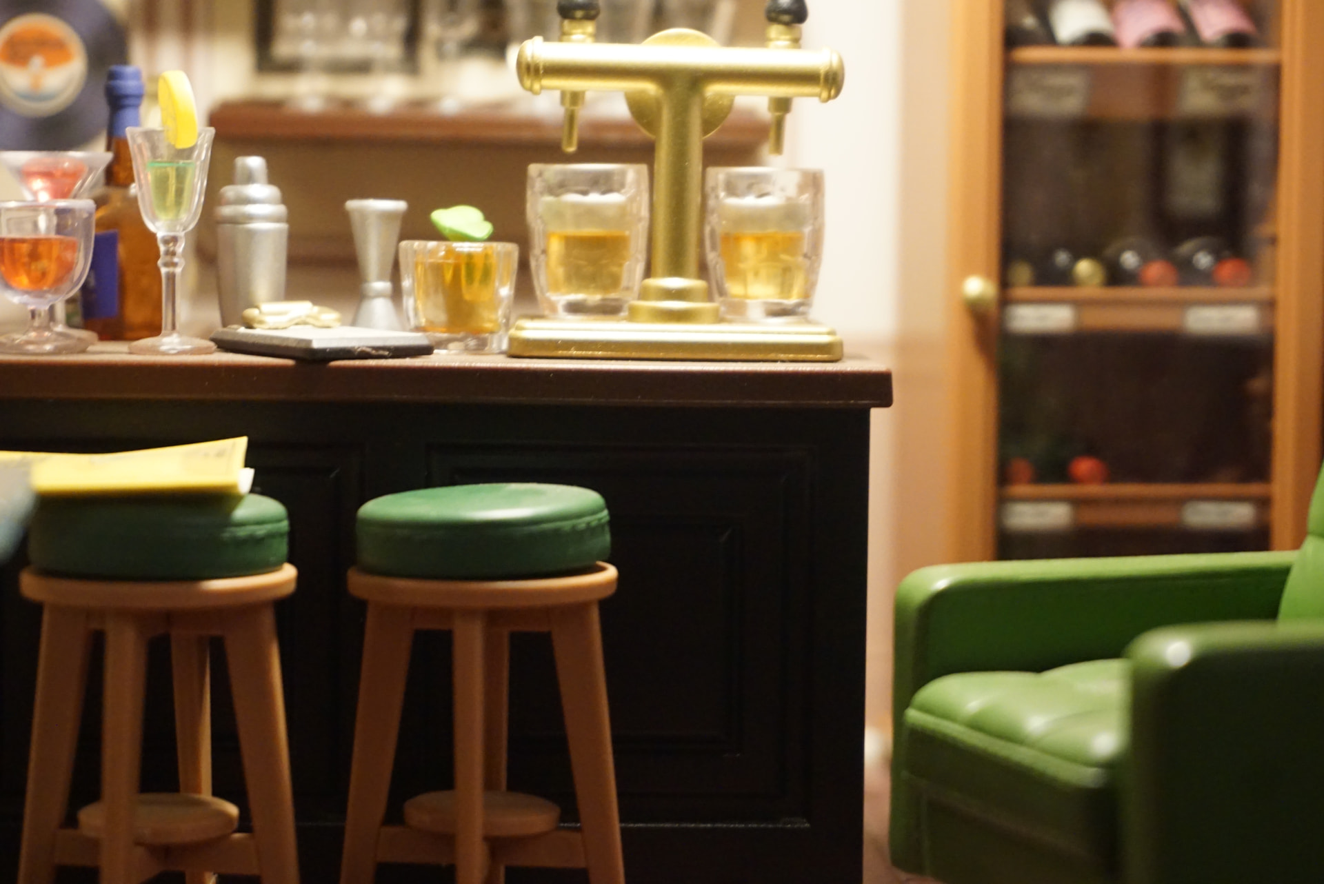 Wows amazing work. I love all those glasses and bottles. The beer tap is looking quite nice.