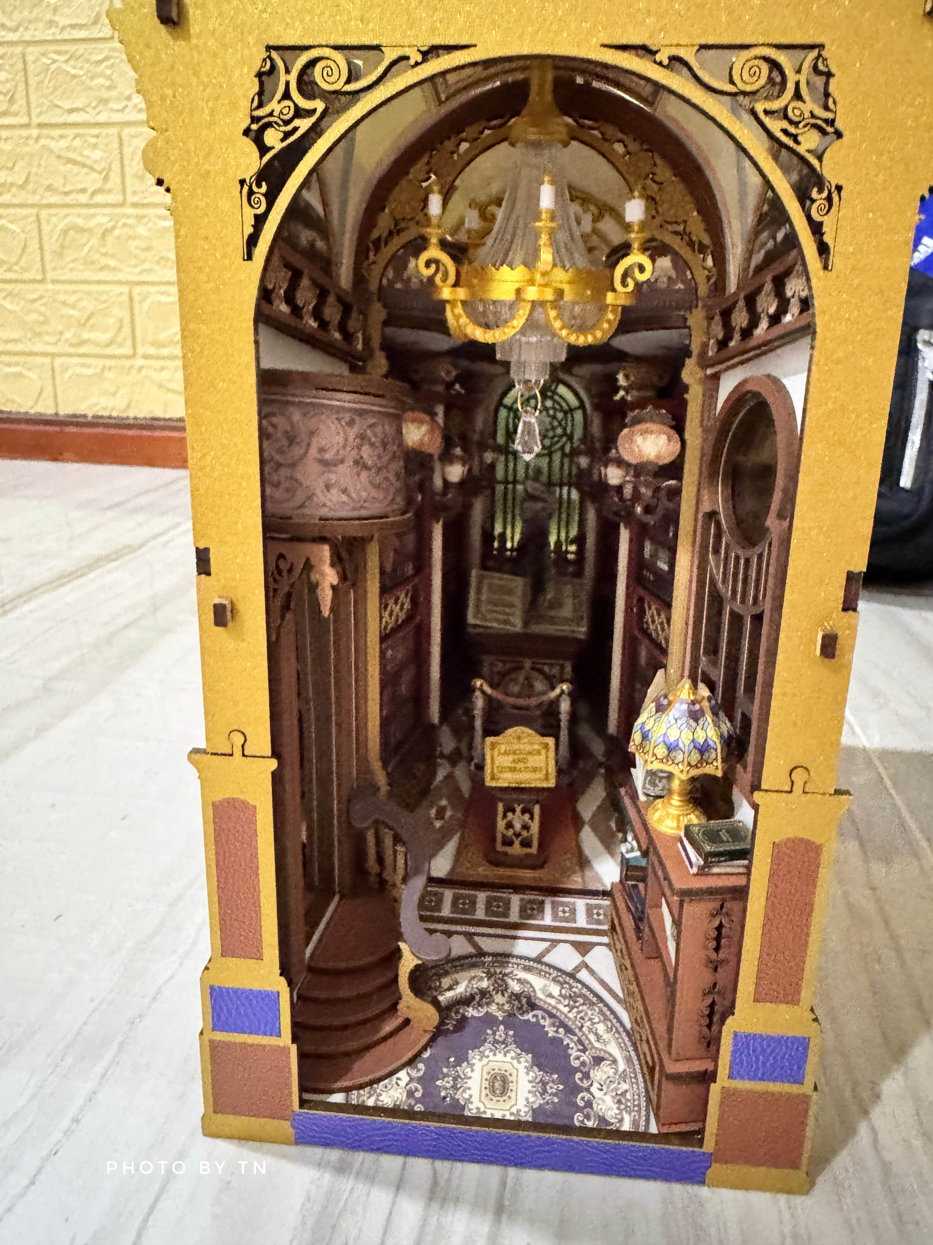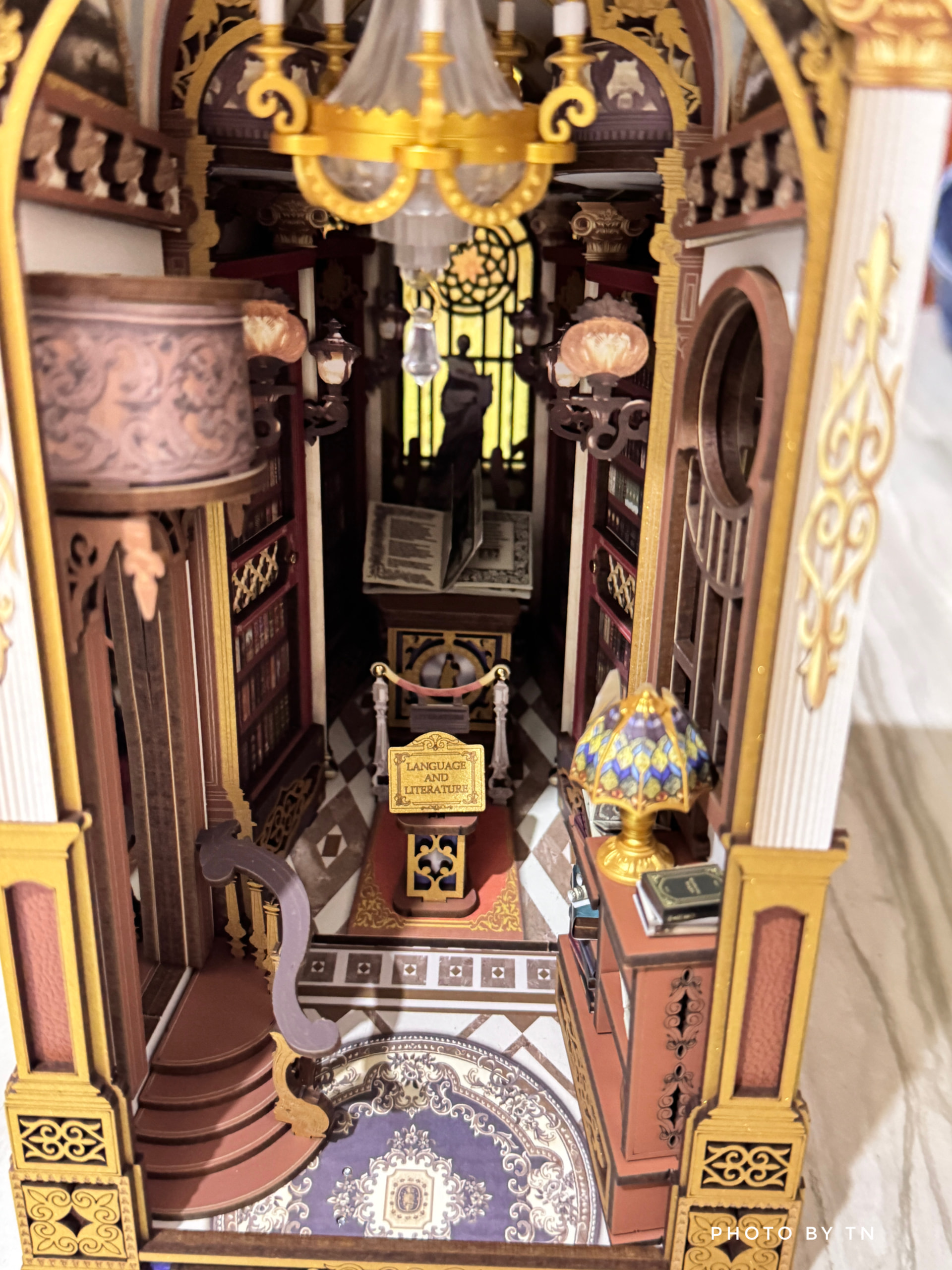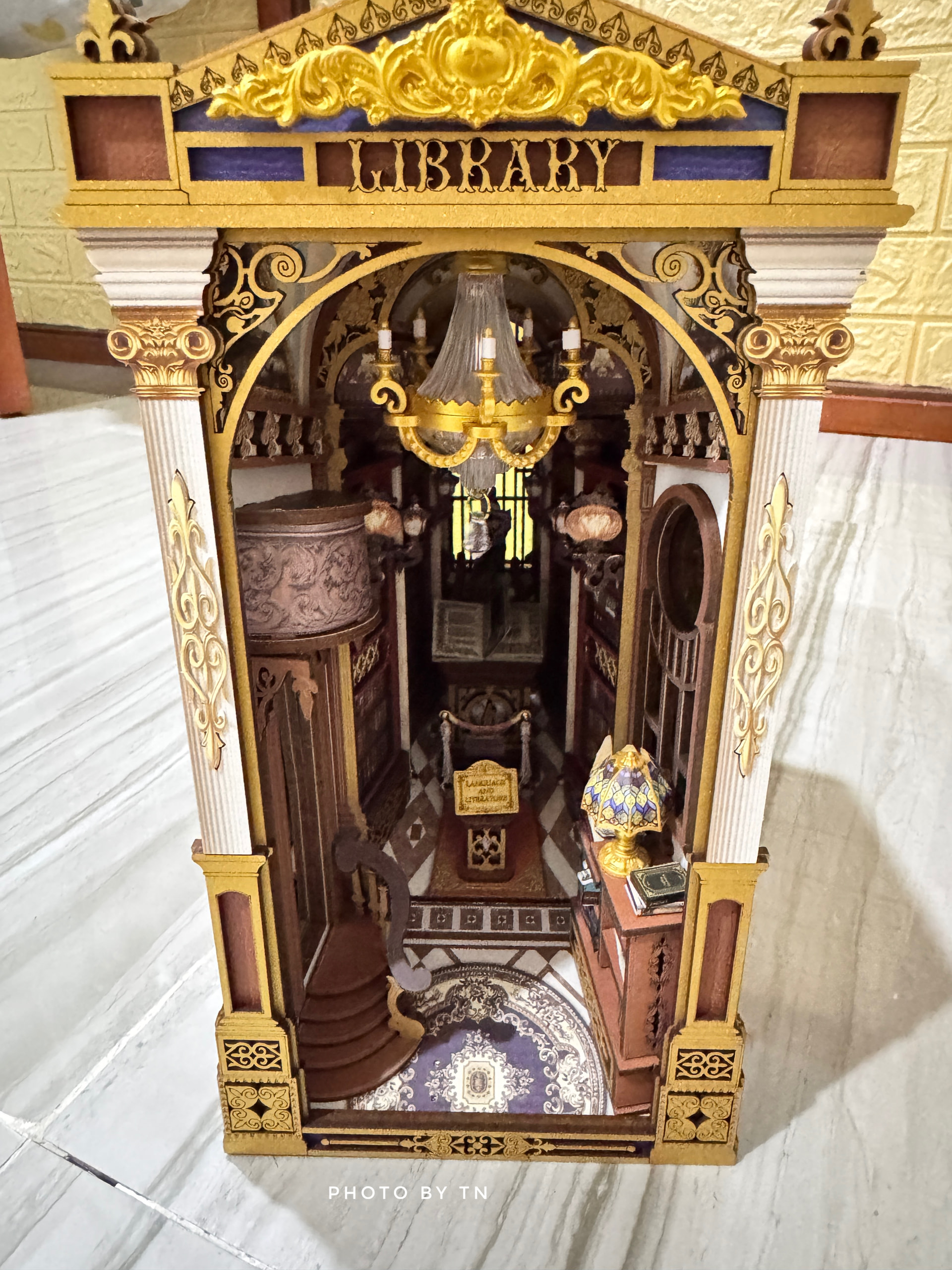 I finally finished it. It’s brilliant and luxurious. I’ll write a post about it when I share the video. It’s been a long time since I’ve seen a booknook with such detail and visual depth. I love this design by Robotime.