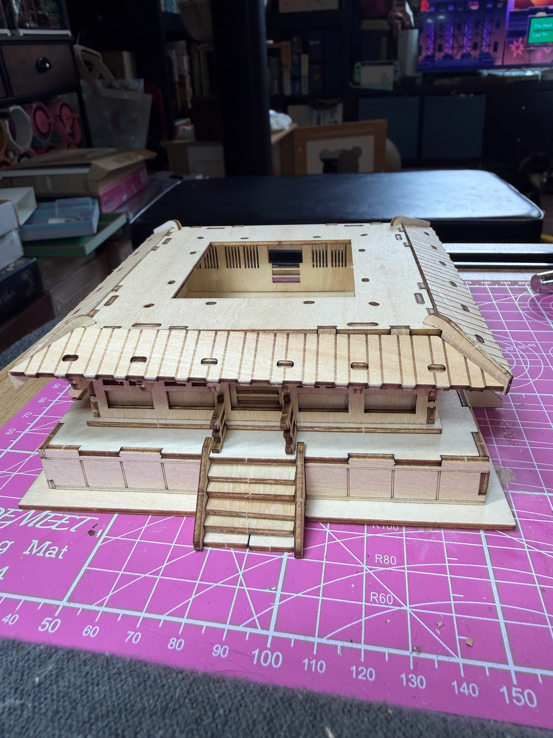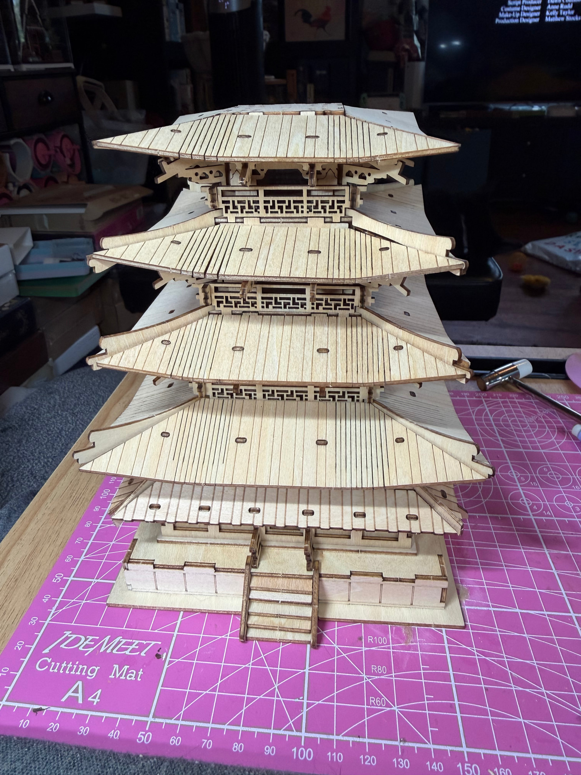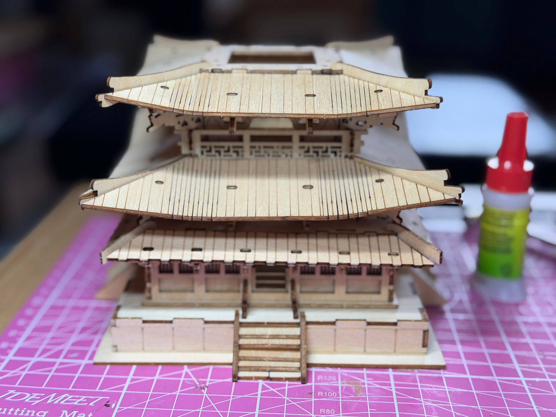 The pagoda starts coming together quickly. Each story builds on the last one, and the fit is so good that I barely needed any adhesive — just the pieces doing their job. There are definitely some spots where you need to slow down and be intentional, but nothing that derails the build.