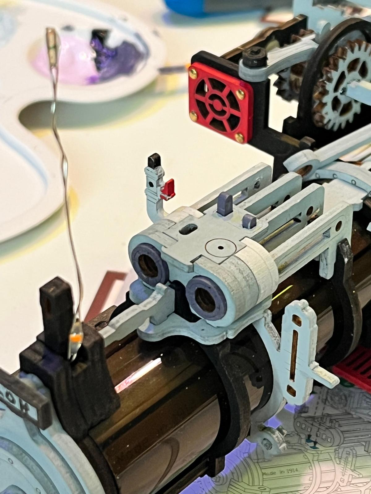 Wow! He’s doing such a great job with the painting. I hope the wobbly part is normal and will get better as he adds more parts. Have fun building the rest.