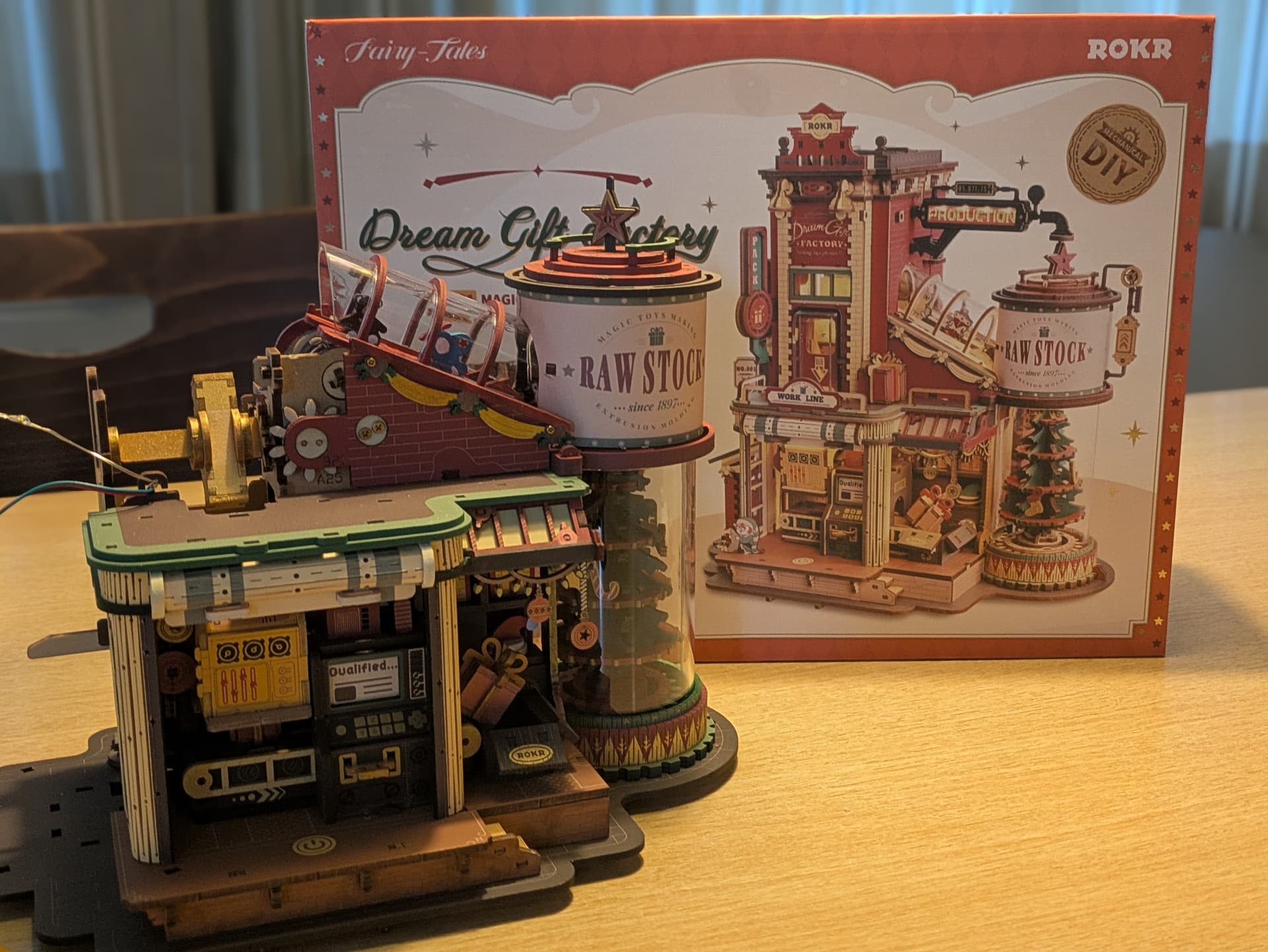 It’s been a while since I posted an update on the gift factory. Building it isn’t going very quickly, as I’m painting all the edges and small details. This build is my favorite so far. The instructions are clear and easy to follow. I added some gold accents to the garlands on the Christmas tree. I tried to keep the original colors as much as possible, because I already like the colors together. By mixing different paint colors, I tried to get as close as possible to the original color so I could paint the edges.