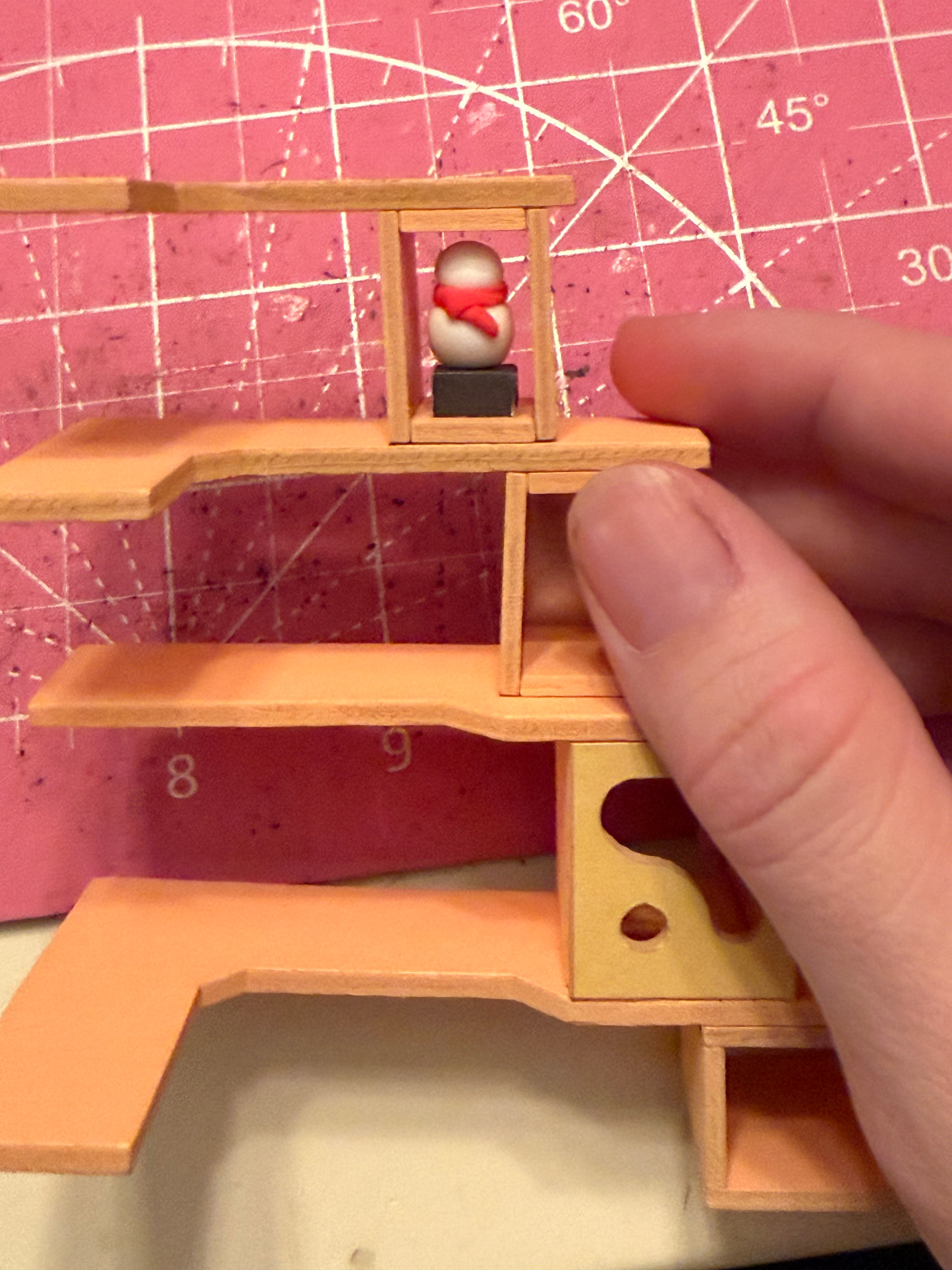 A little snowman knickknack I had to make out of clay, I was worried about it being to big to put on the shelf, so I put it on right away so I could make adjustments while the clay was still wet!