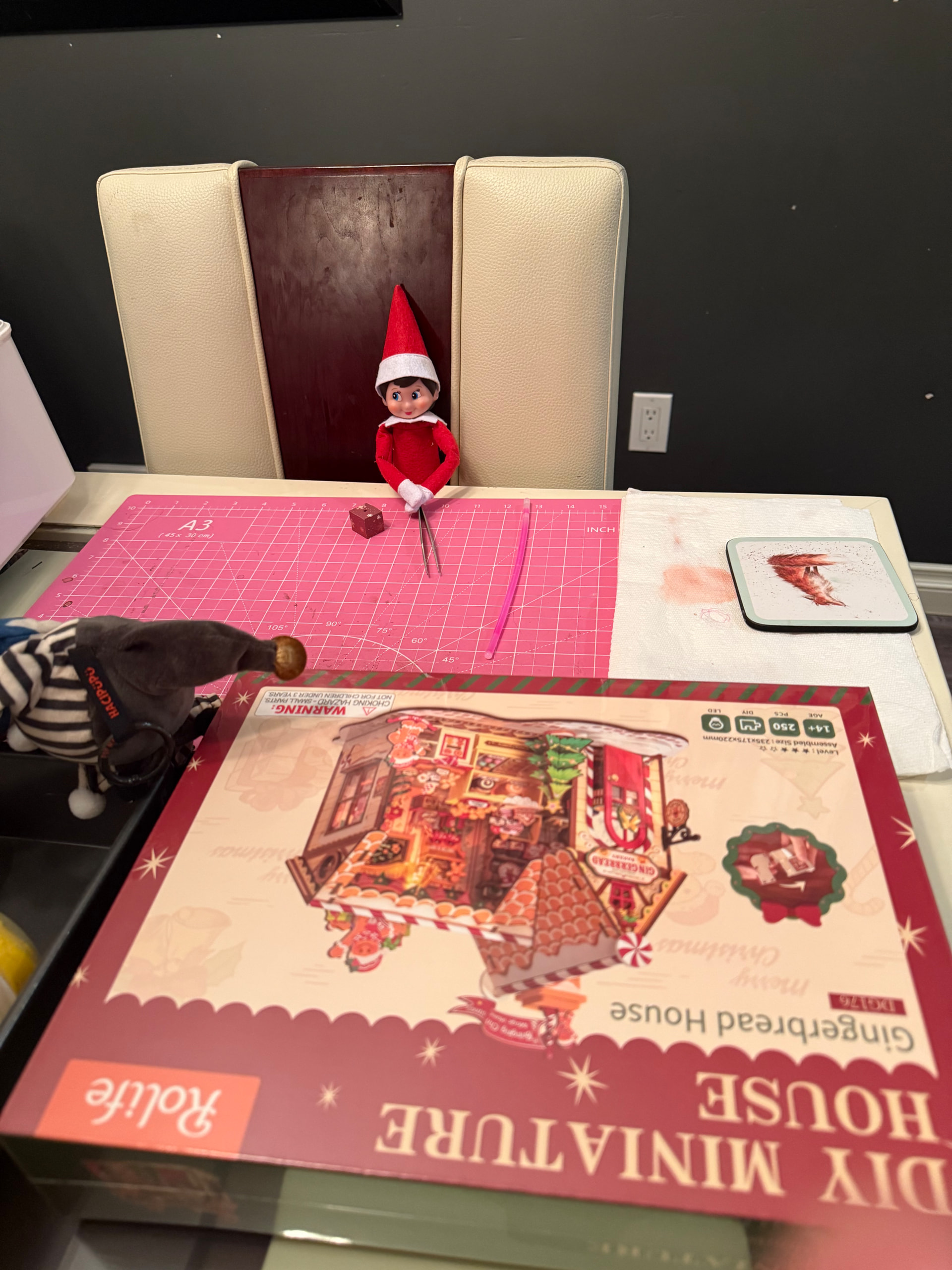This dang Elf on the shelf is in MY spot getting ready to build MY kit! Sigh I guess I’ll have to start my build tomorrow instead, I don’t want to be the mom who beat up the elf on the shelf… It’s my Friday tomorrow anyway.. lol Hope everyone is having a great week so far!