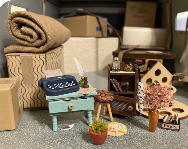 The furnature and detail items always get built before the structure in most miniature DIY kits. I always wished I had a little moving van or storage container to keep my furniture and details in while I complete the structure and other items.